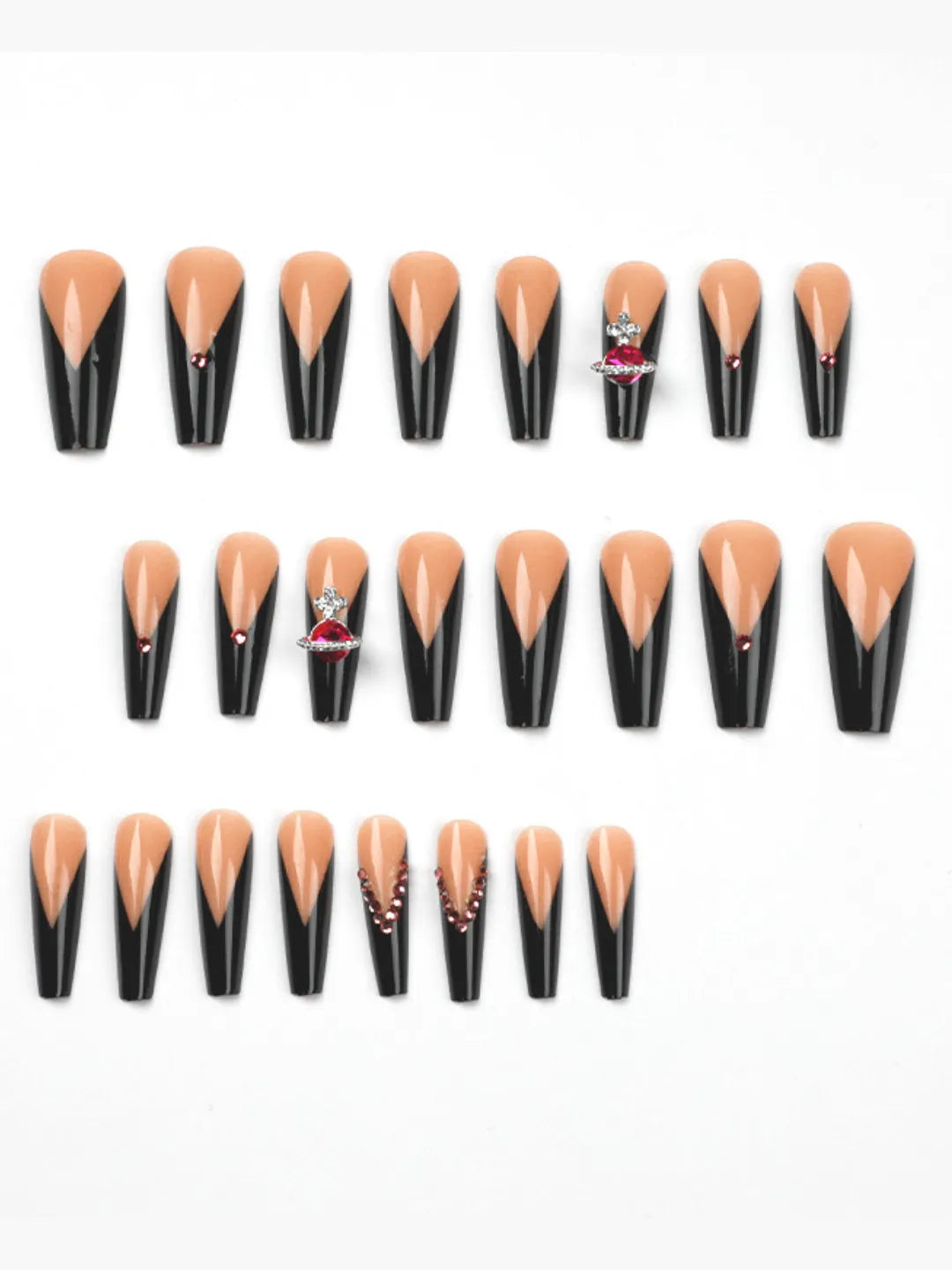 - 24 press-on nails / 24 adhesive pads / 1 nail file / 1 cuticle pusher