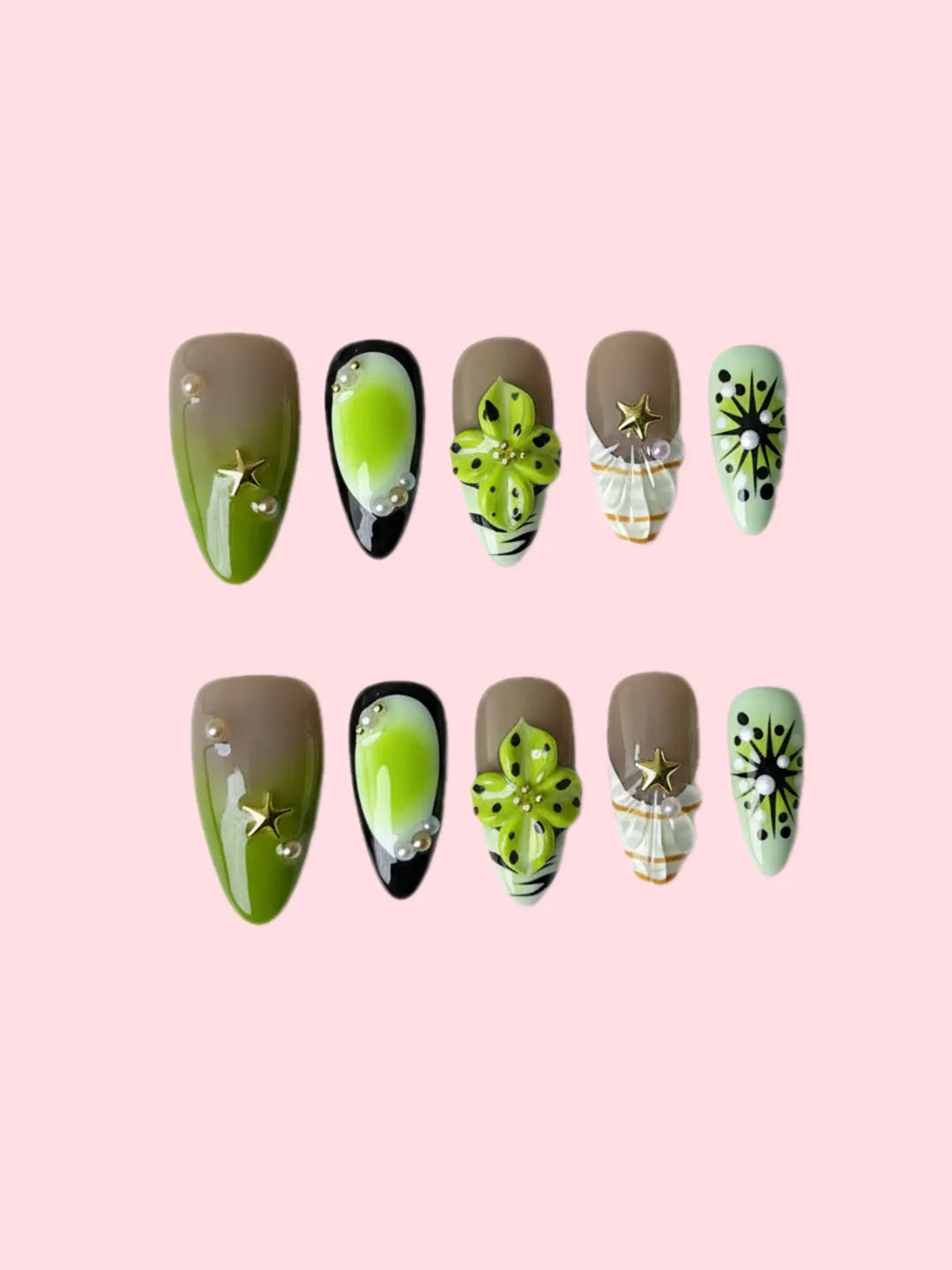 Bloom Gradient nails feature soft gradient tones combined with delicate 3D carvings, meticulously handcrafted. The layered design creates a refined and elegant look, perfect for everyday or romantic occasions.