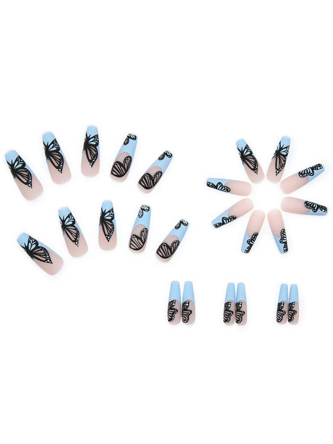 - 24 press-on nails / 24 adhesive pads / 1 nail file / 1 cuticle pusher