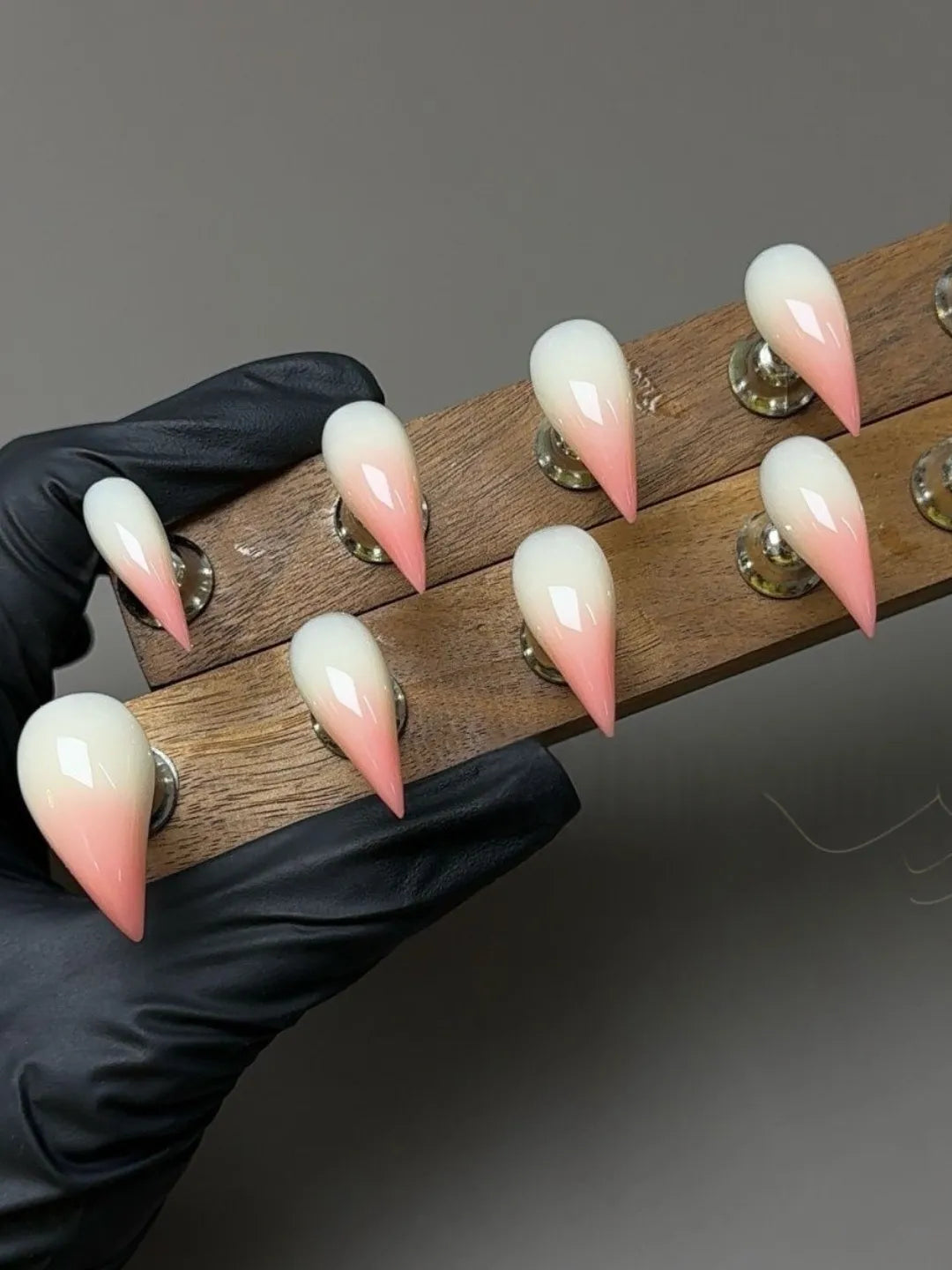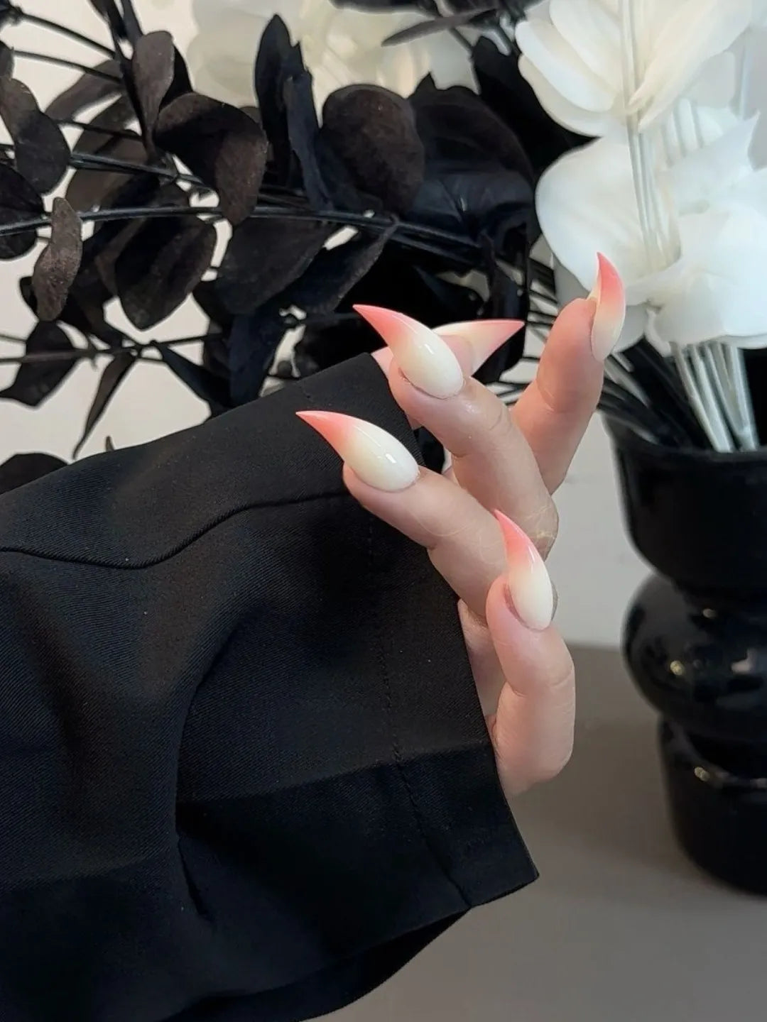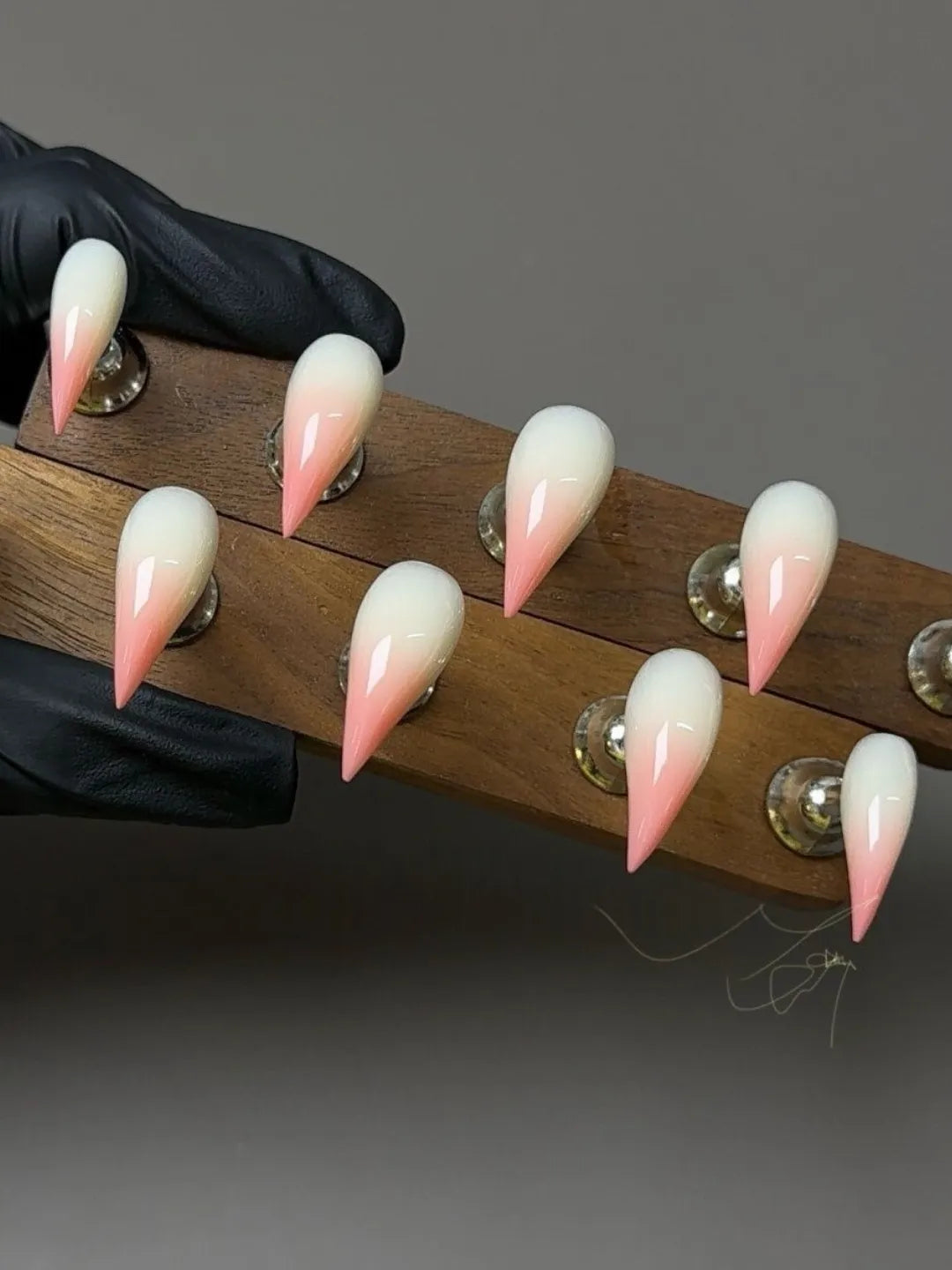 Peach Bubble Dragon Claw nails combine soft pink tones with sharp shapes, playful yet unique, custom-made for sweet fingertip charm.