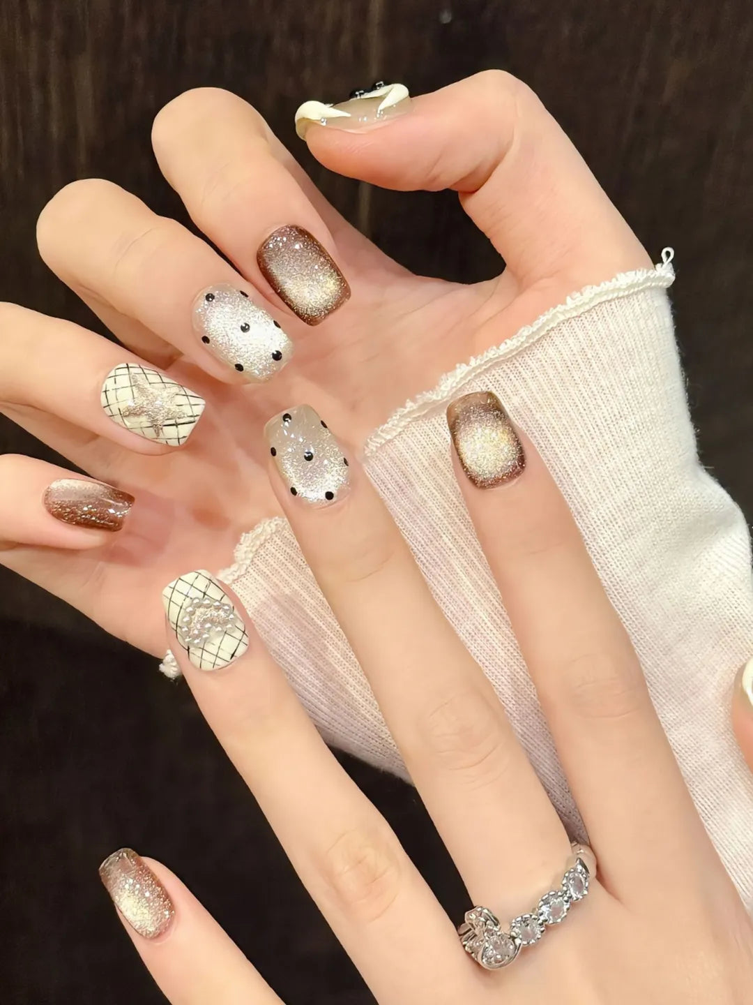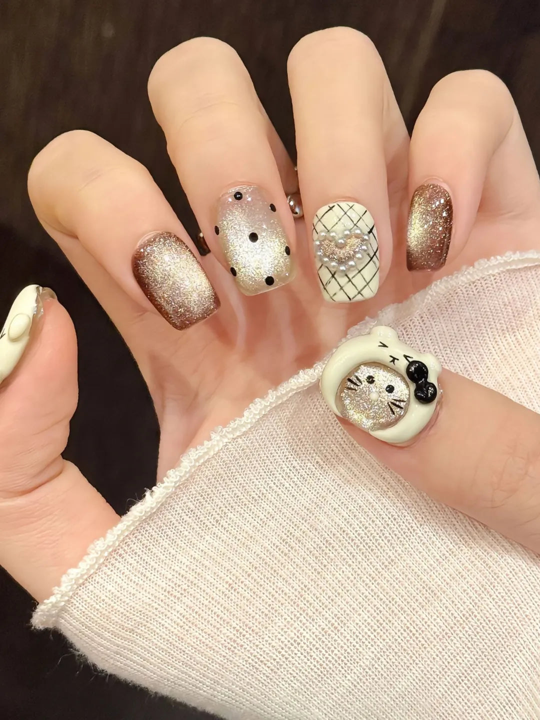 Style:Handmade short caramel cat eye press-on nails with cute cartoon design, INS-style, high-end premium quality, sweet, cute, and refined, perfect for daily wear or photoshoots.