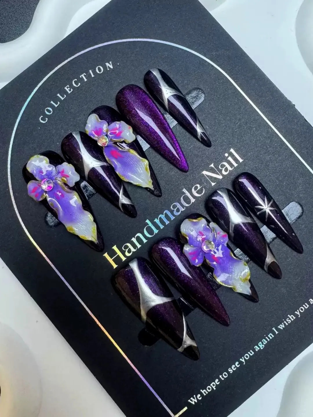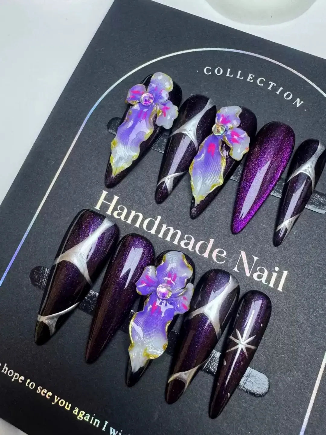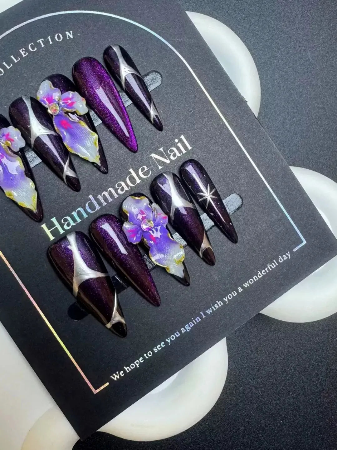 Cat-eye magnetic shimmer base with 3D carved floral design β elegant, mysterious, and uniquely refined.