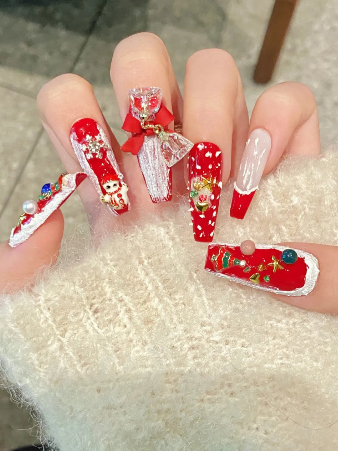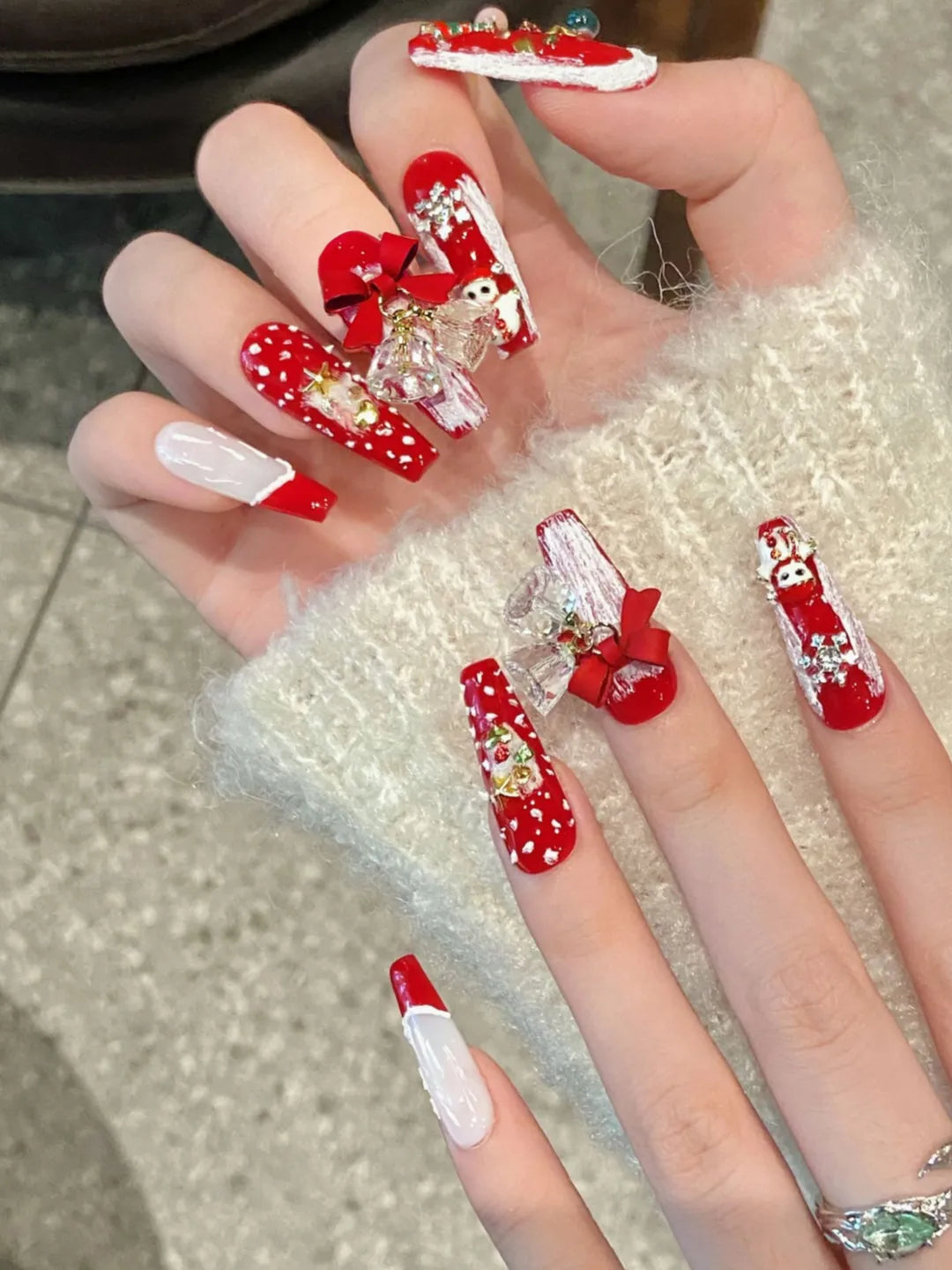 Christmas Night 100% handmade nails with festive Christmas design, perfect for parties or winter styling.