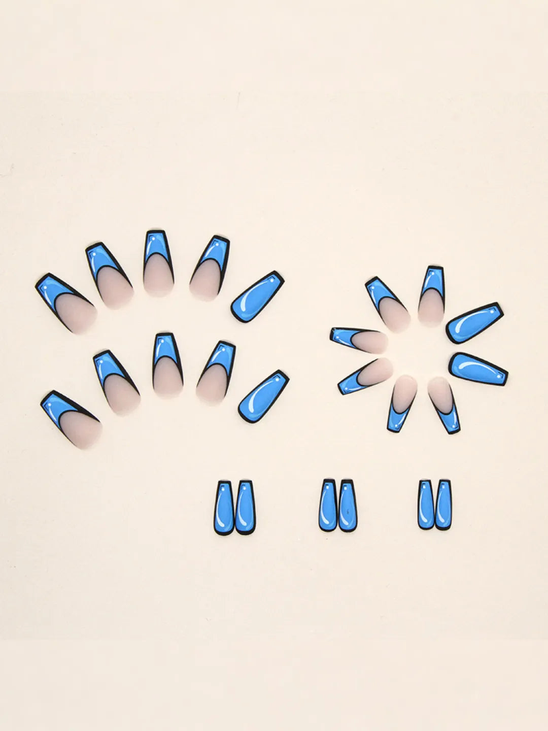 - 24 press-on nails / 24 adhesive pads / 1 nail file / 1 cuticle pusher
