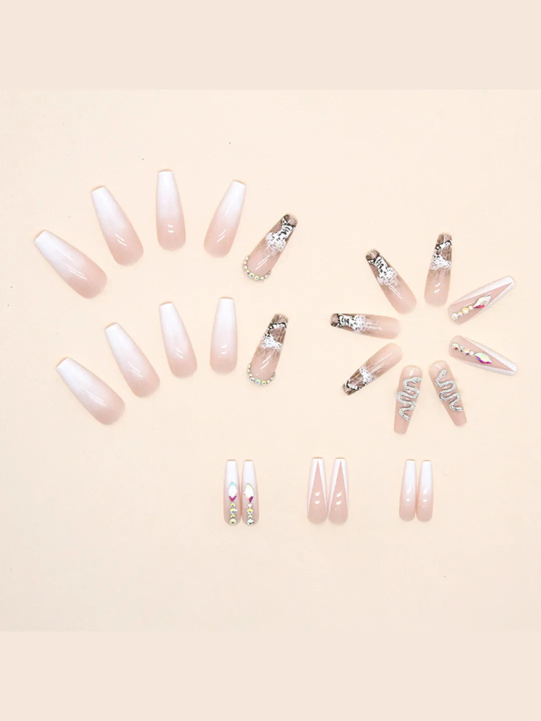 - 24 press-on nails / 24 adhesive pads / 1 nail file / 1 cuticle pusher