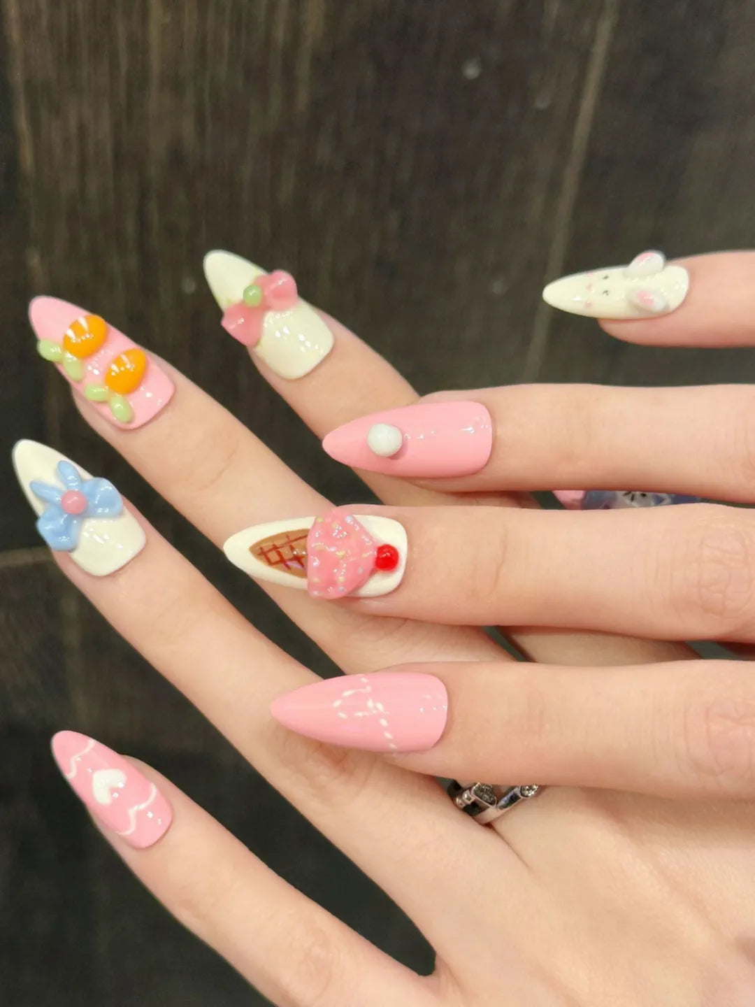 POPCORN BUNNY NAILS press-on nails feature adorable bunny and popcorn designs, adding a playful, cute, and sweet touch to your fingertips for a lively look.
