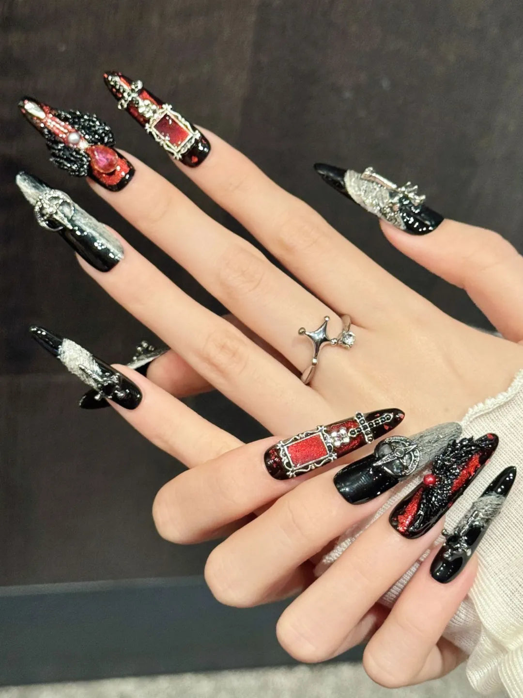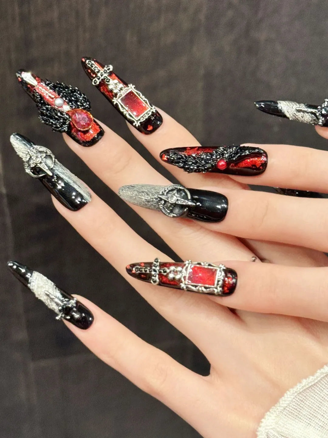 Style:Designed with dark-toned cross elements to create a mysterious, powerful, and edgy nail presence.