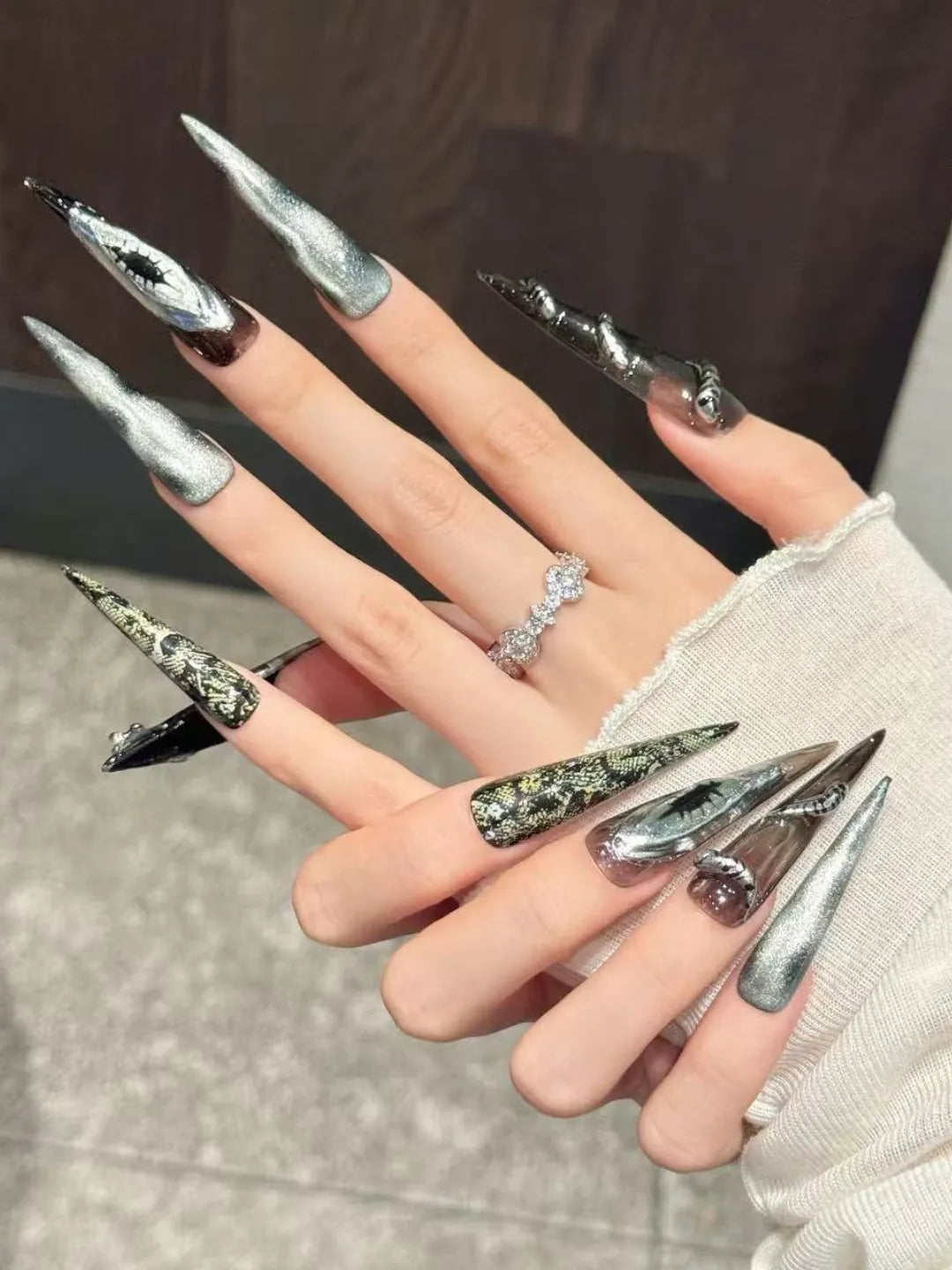 DEMON EYE GAZE press-on nails feature dark eye motifs and mysterious details for an edgy look.
