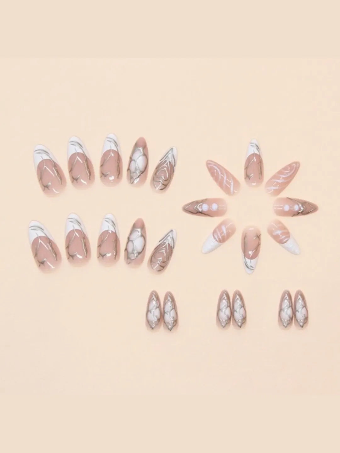 - 24 press-on nails / 24 adhesive pads / 1 nail file / 1 cuticle pusher