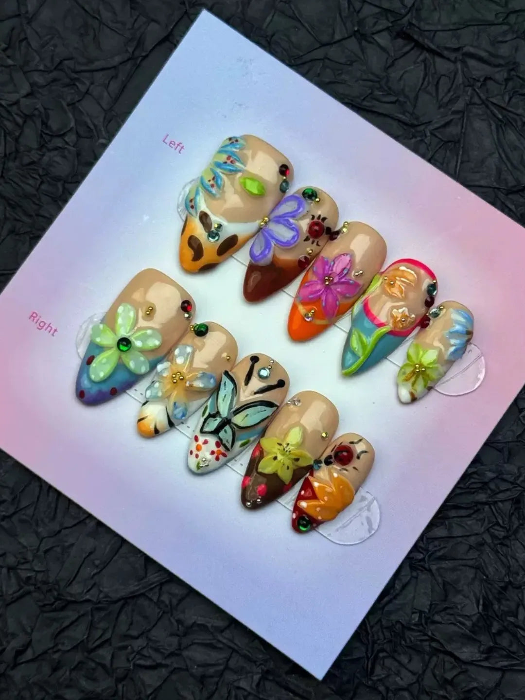 Spring Bloom nails, light and delicate, perfect for daily wear or dates, adding a touch of spring charm to your fingertips.