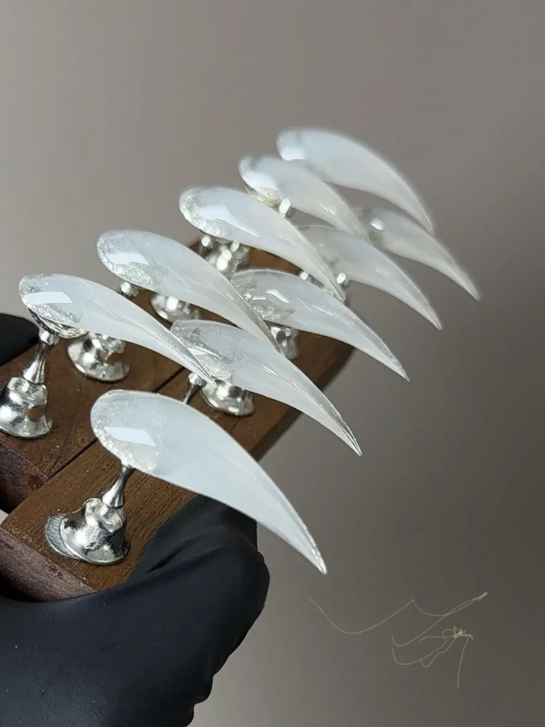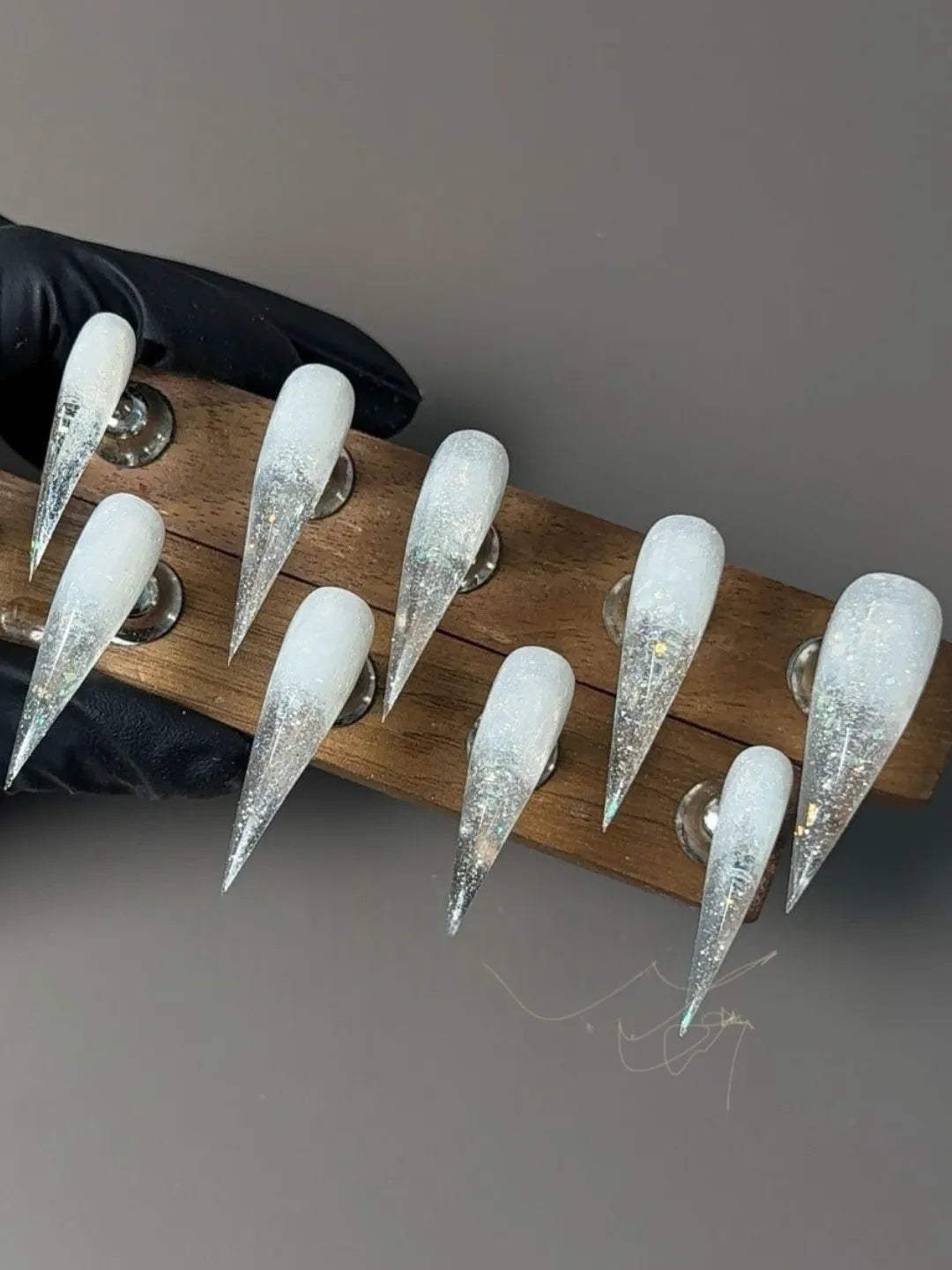 Style:Snow-white with a glowing effect, dreamy yet sharp, custom-made nails