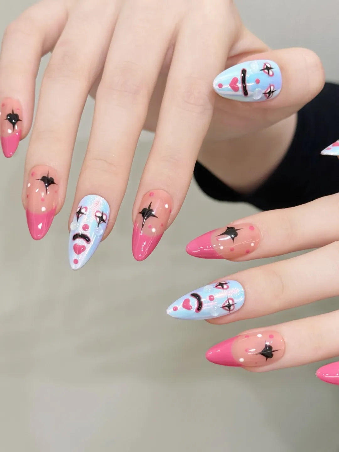 Fun clown 100% handmade nails with colorful, playful designs, perfect for her, ideal for parties, holidays, or creative everyday styles.