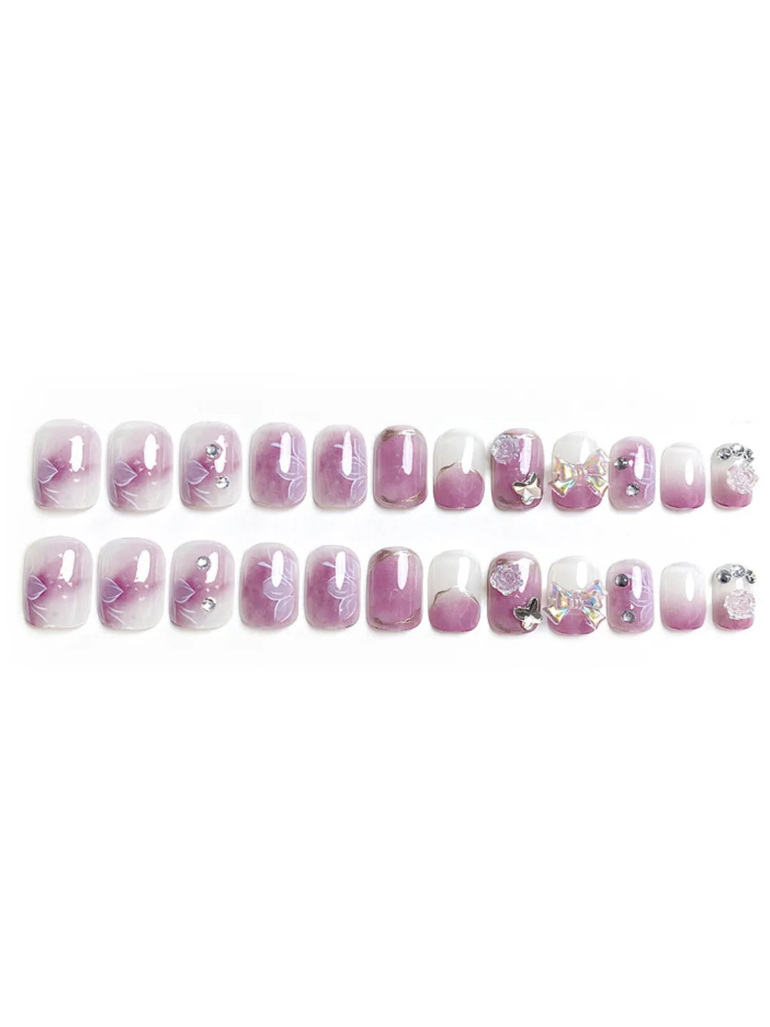 - 24 press-on nails / 24 adhesive pads / 1 nail file / 1 cuticle pusher