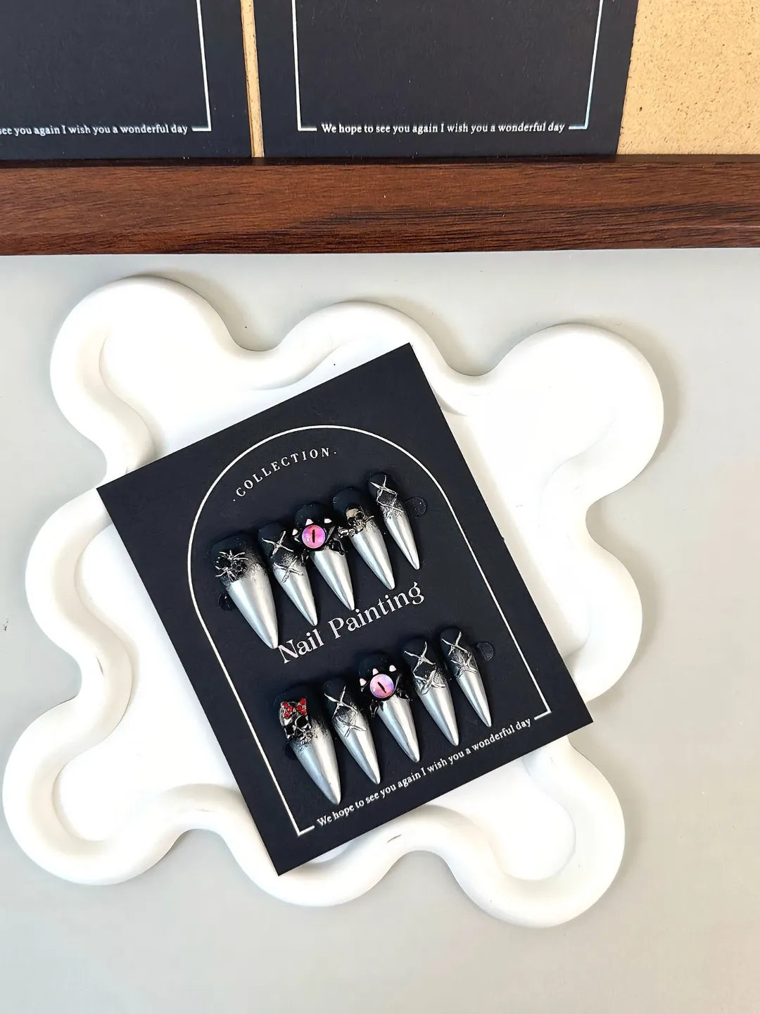 HALLOWEEN CHROME GRUNG nails feature chrome shine with handcrafted carvings, long and easy to wear, dark and edgy, perfect for Halloween parties and festive looks.