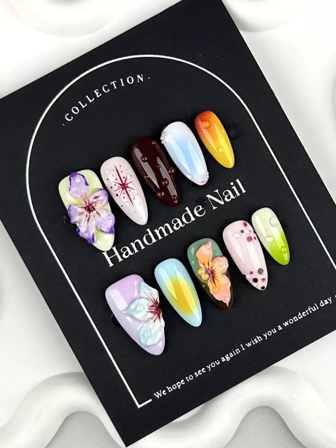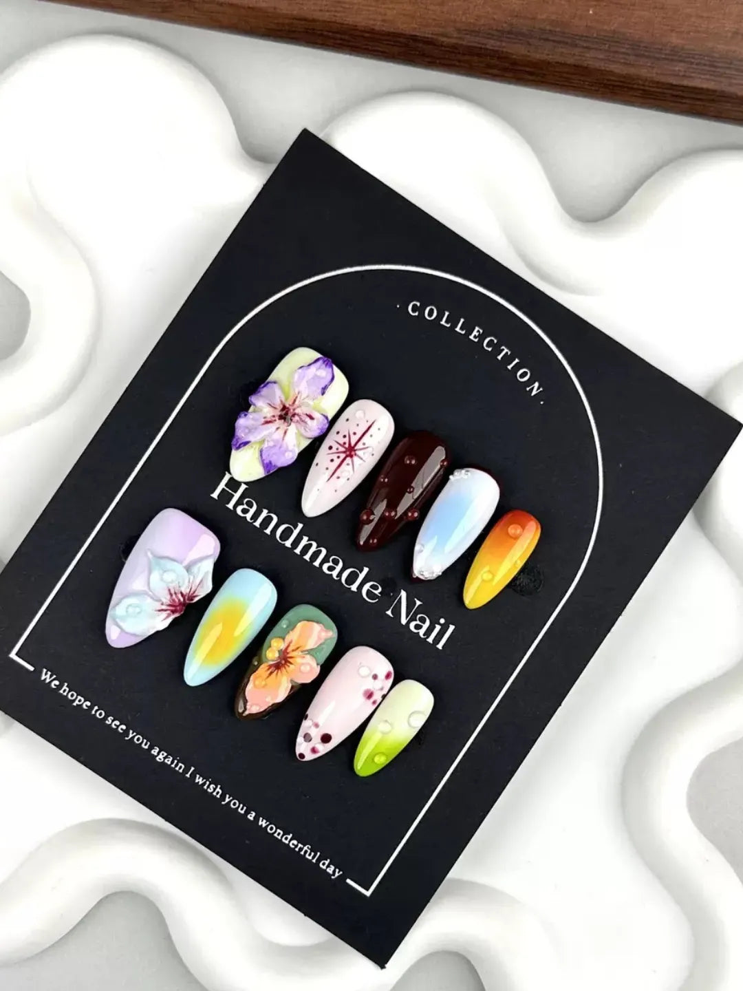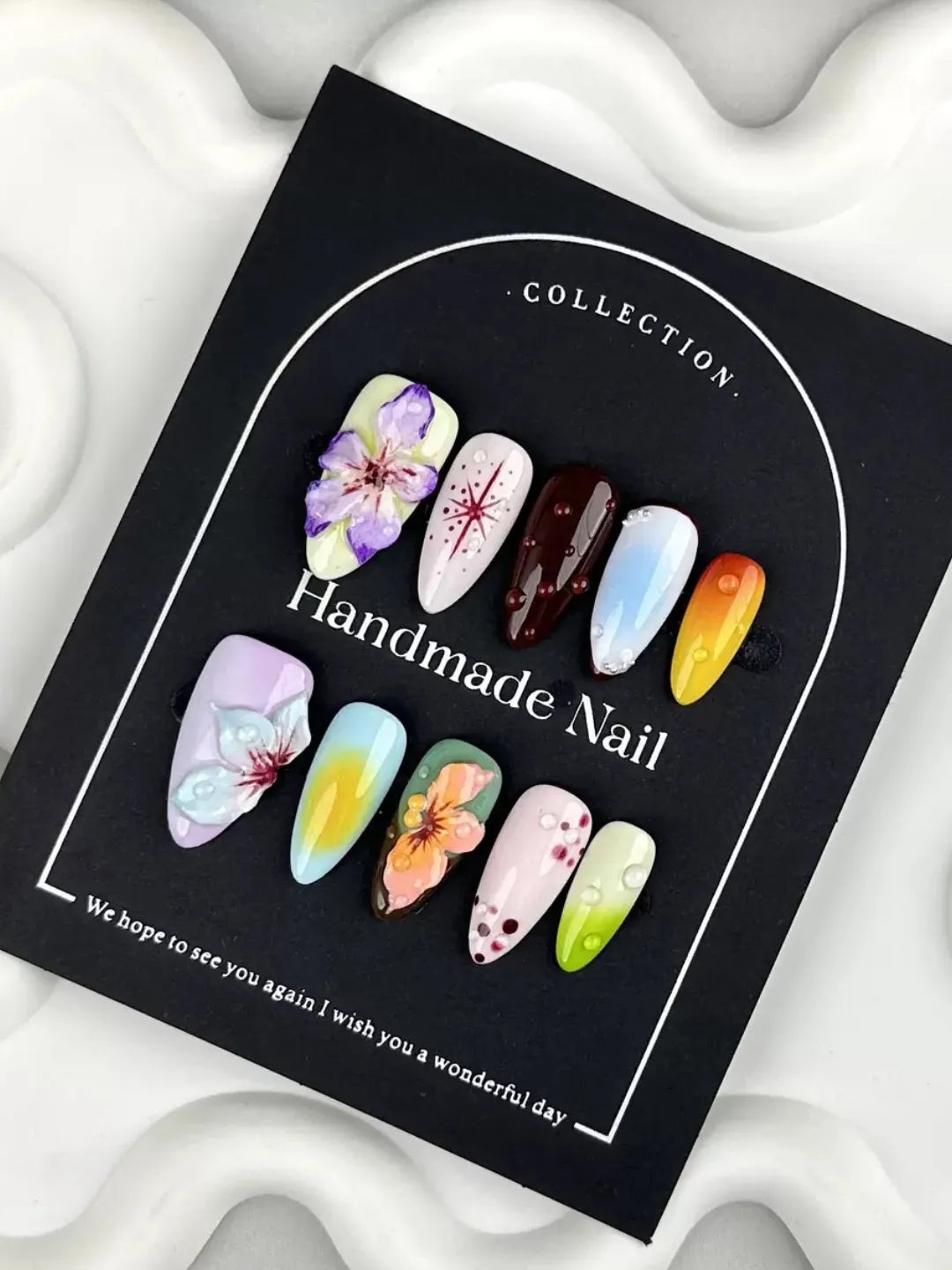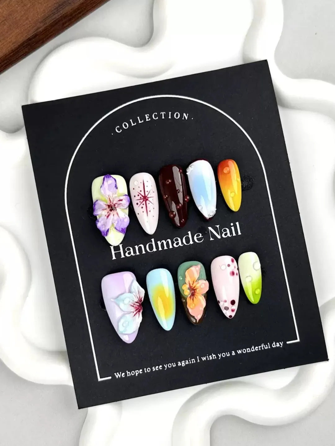Hand Carved nails feature delicate 3D sculpting, each detail handcrafted with precision, creating a refined and artistic look that highlights feminine elegance.