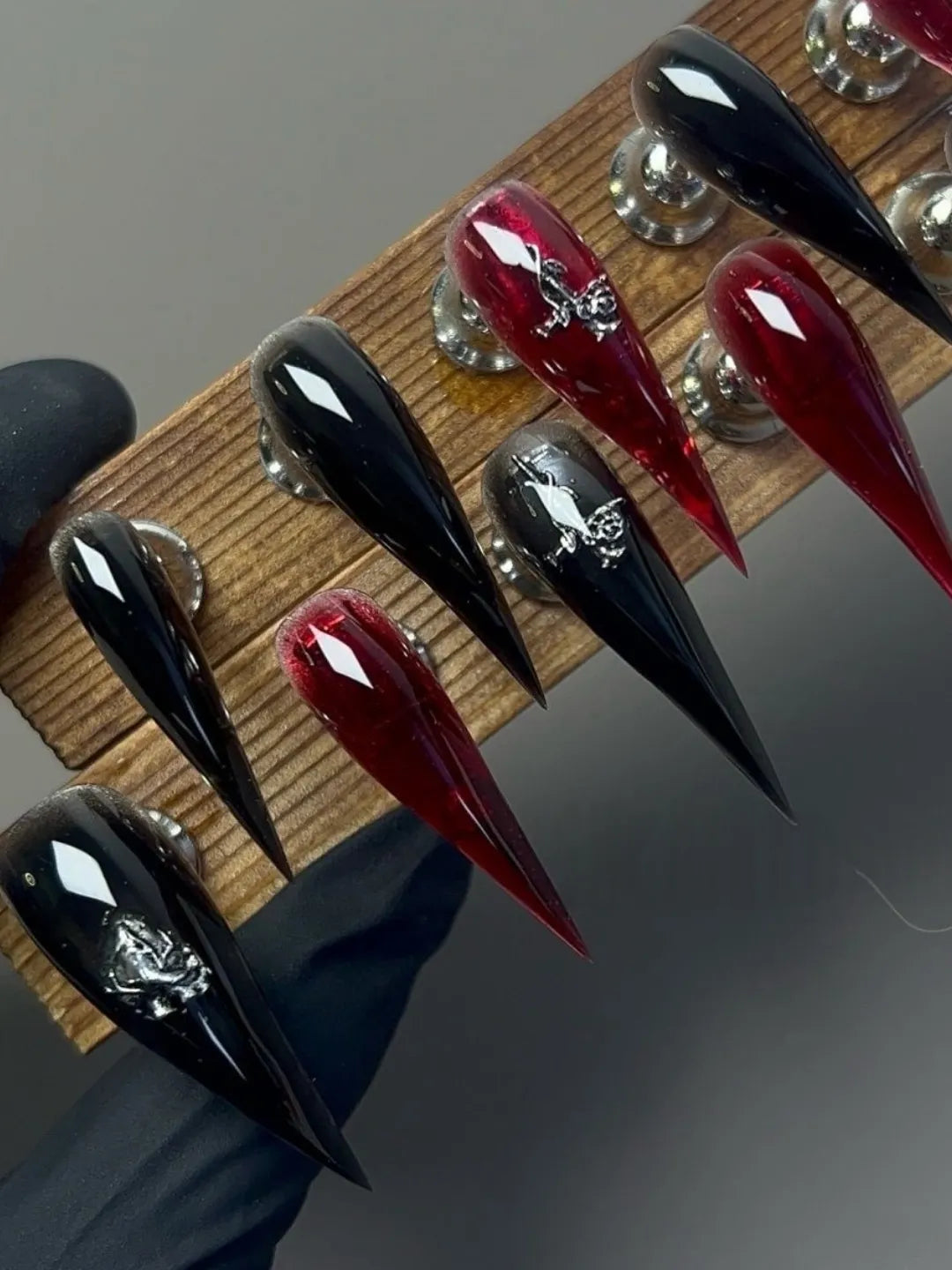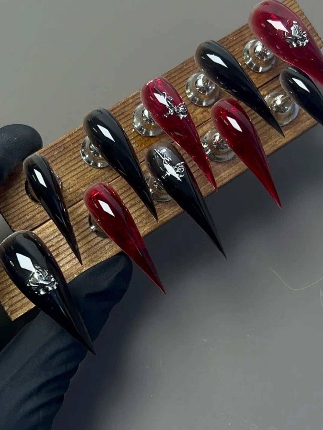 Style:Deep blood-plasma tones with a dangerous allure, custom-made nails