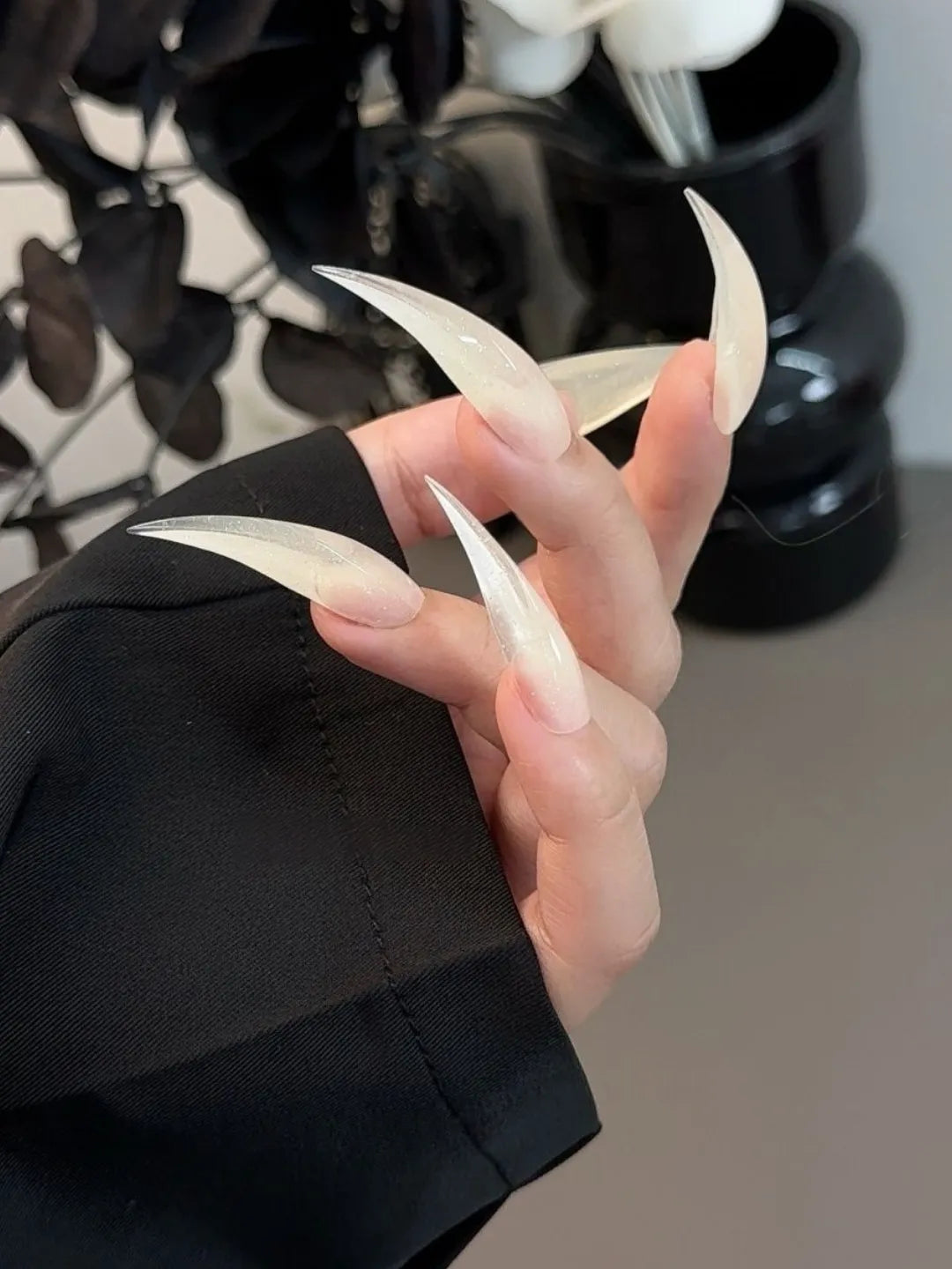 Jade Glitter Dragon Claw nails blend soft jade tones with delicate sparkle, elegant and gentle, custom-made for unique fingertip charm.