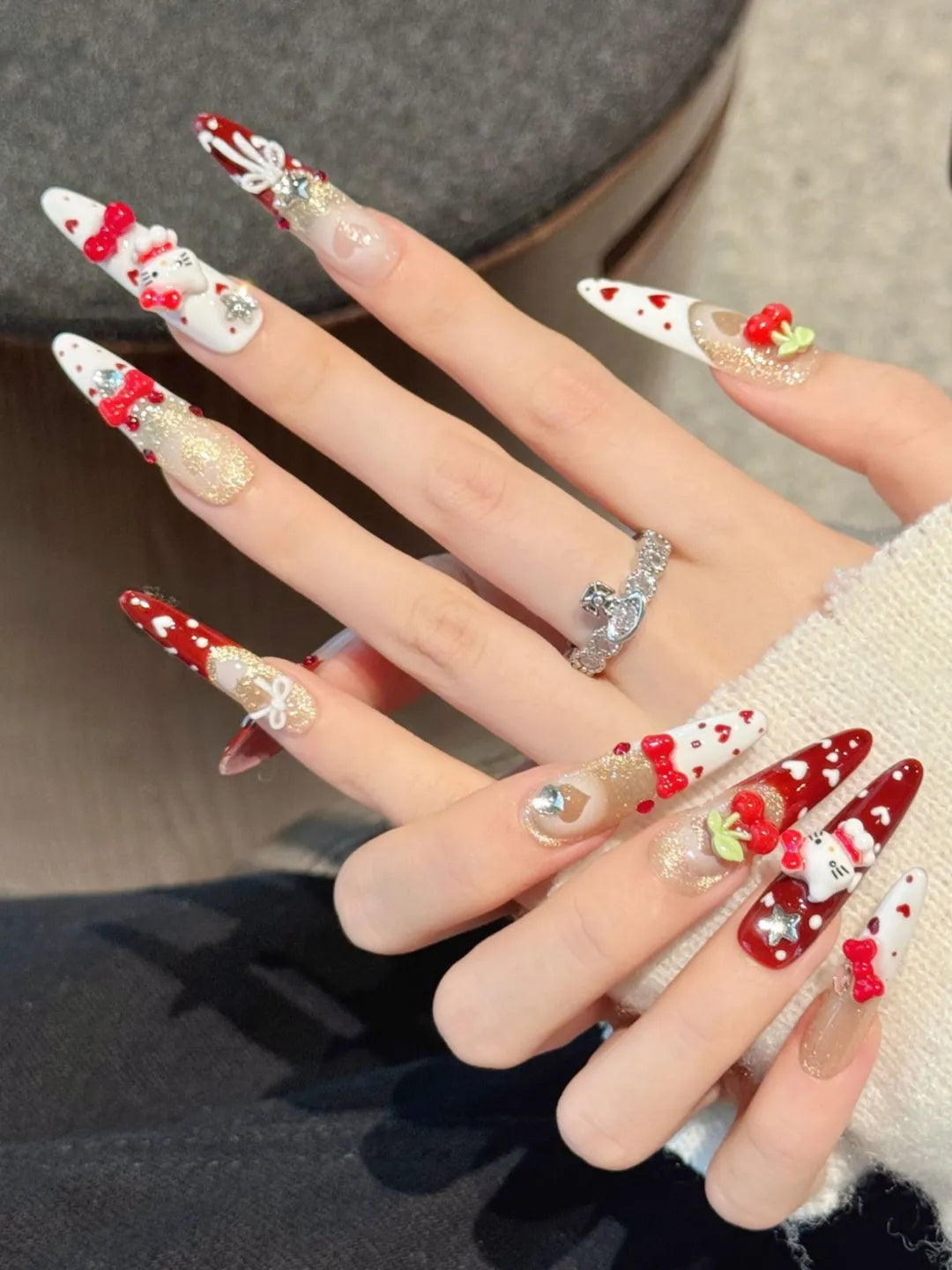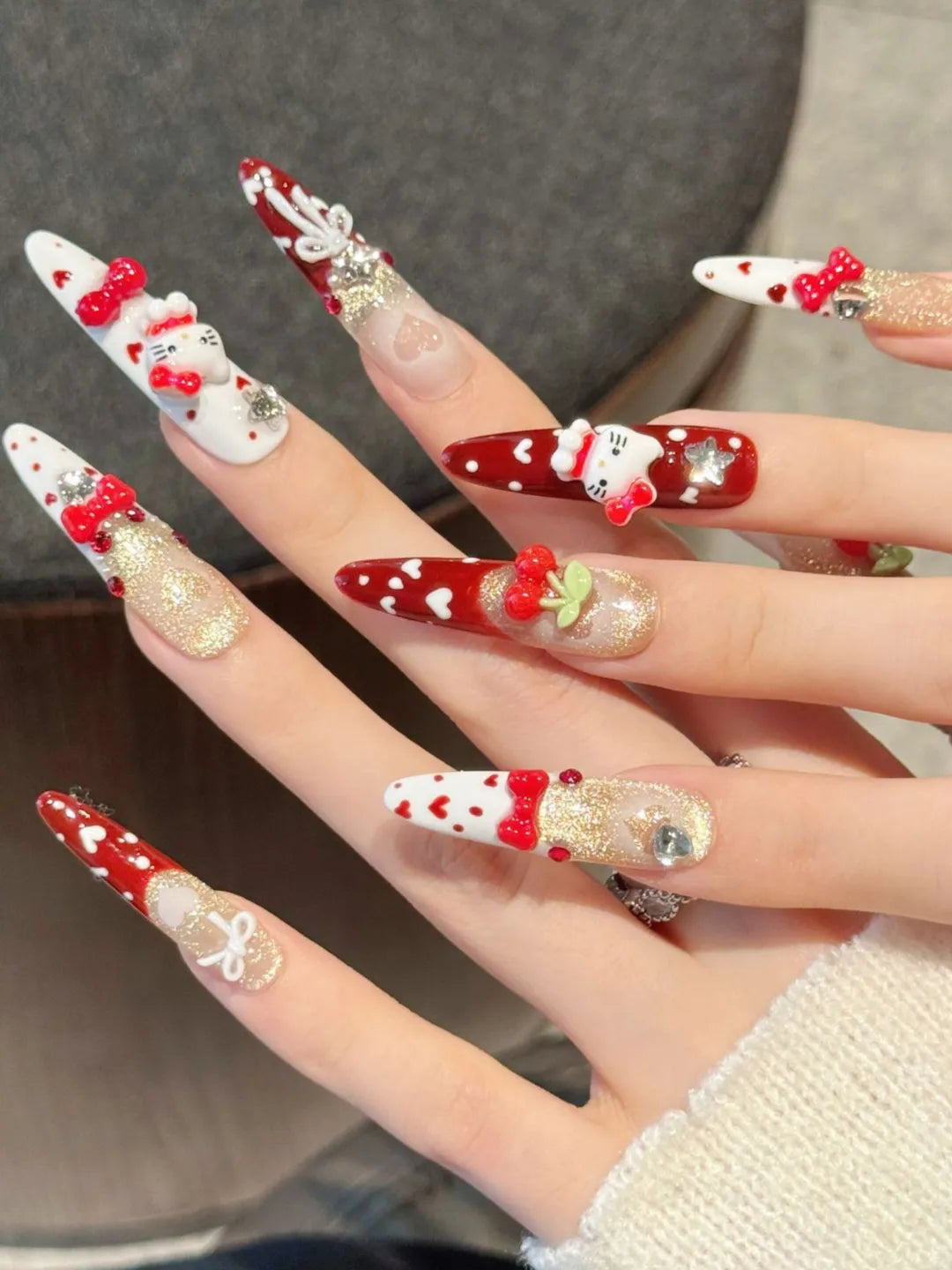 Style:Inspired by a cute little cat and vibrant red, creating playful and cozy nail art.