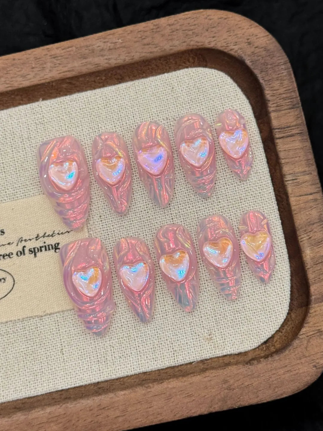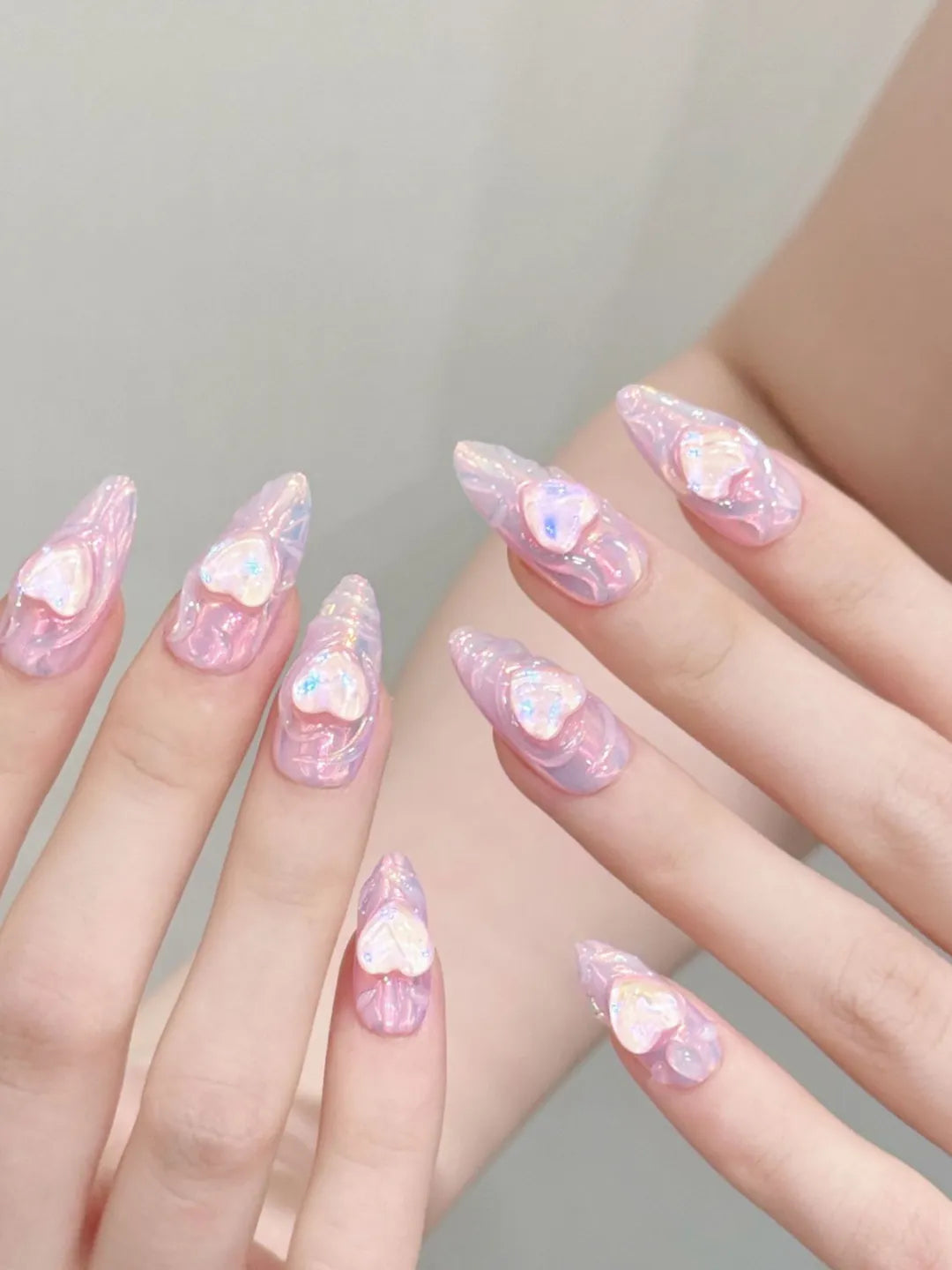 Style:Fantasy 3D nails with bubble and aurora elements, sparkling, dreamy, and luxurious.
