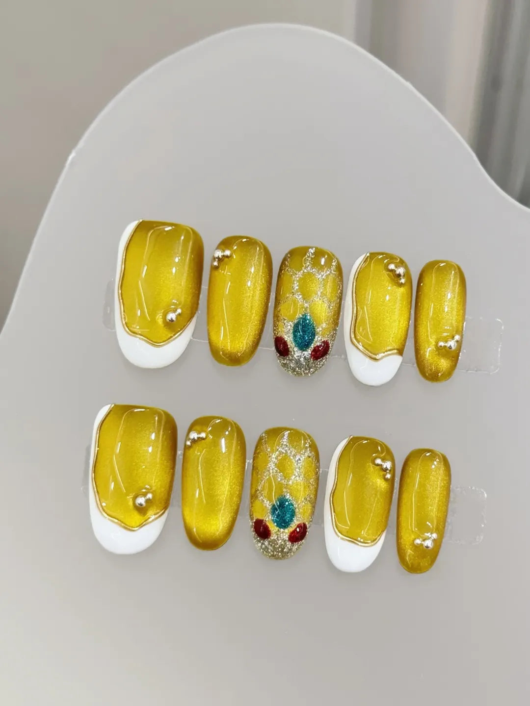 Luxury Charm Eyes hand-painted snake head color-changing cat-eye short press-on nails, premium trendy design, ideal for daily wear, dates, or special occasions, showcasing elegance.