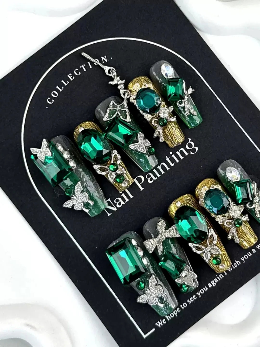 Dark or metallic base with studs, chains, and metallic line accents β bold and edgy, perfect for daily wear or parties.