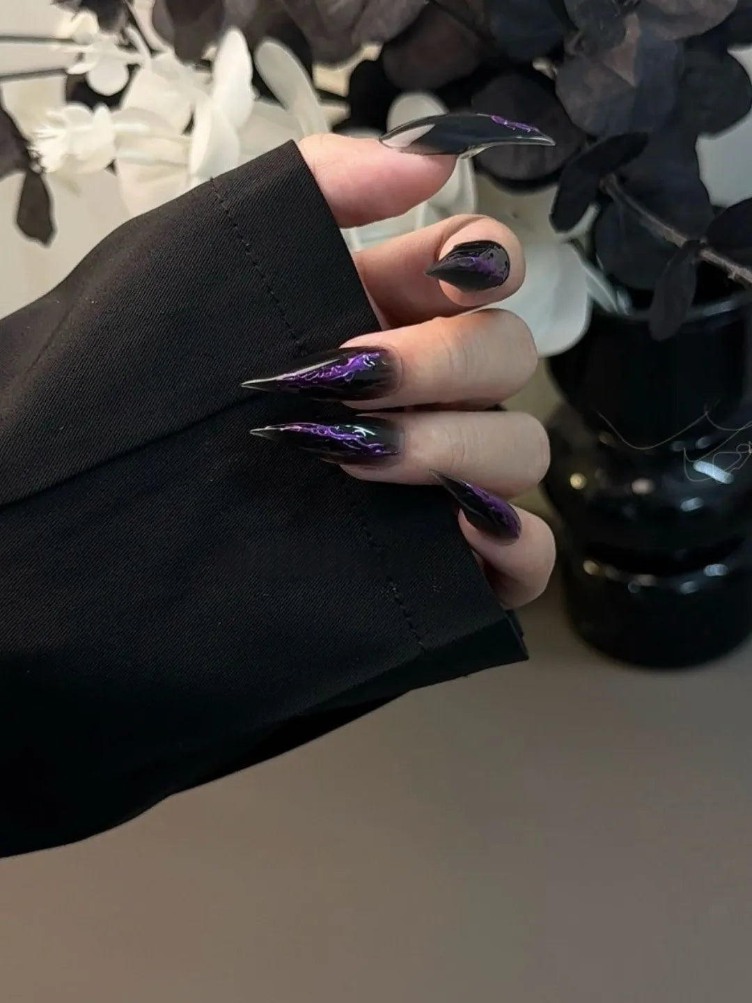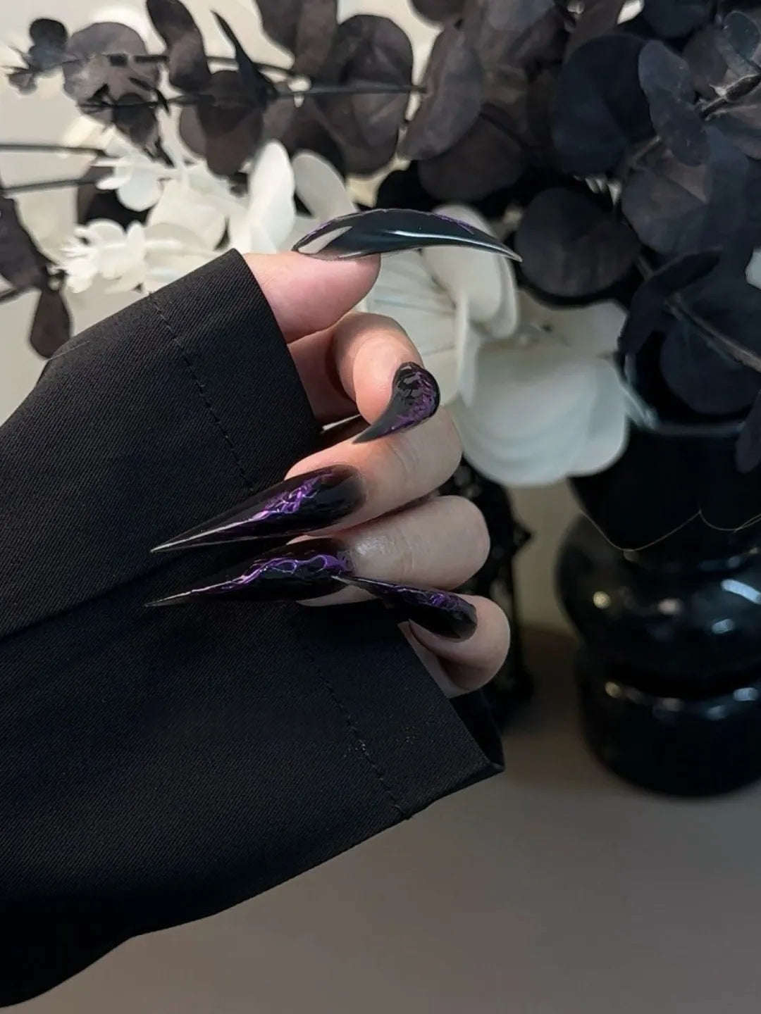 Style:Deep purple night tones, mysterious, elegant, and sharp, custom-made nails