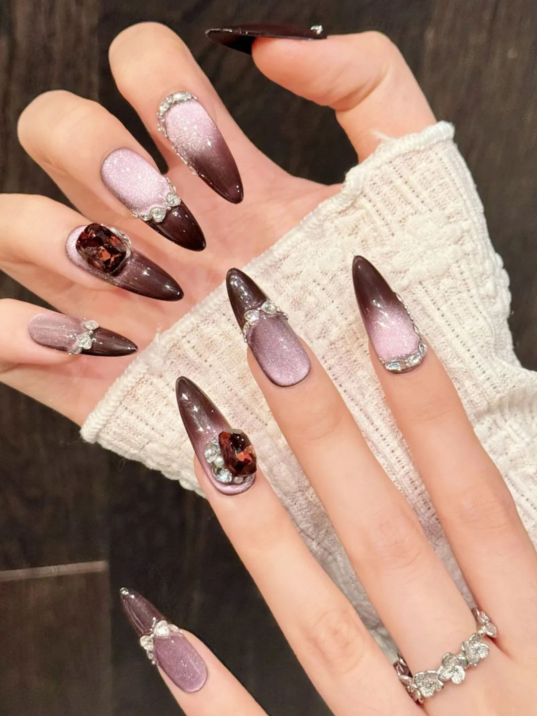 Style:Inspired by moonlit purple tones and cat-eye shimmer, combined with glass-like glow to create a dreamy, elegant and luxurious long-nail aesthetic.