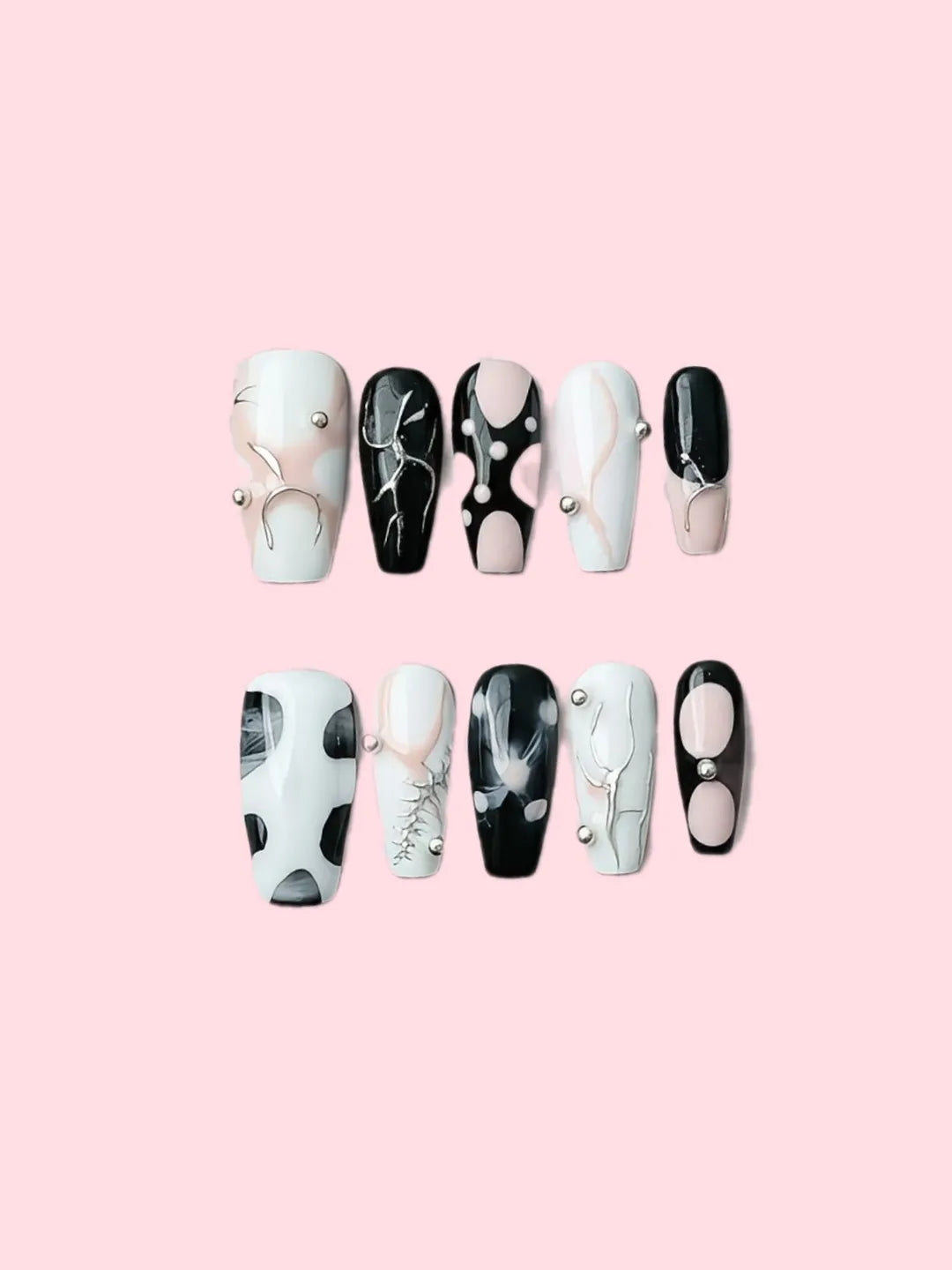 Dark gradient or color-blended ombré base with punk-inspired accents, edgy and bold — perfect for daily wear or parties.