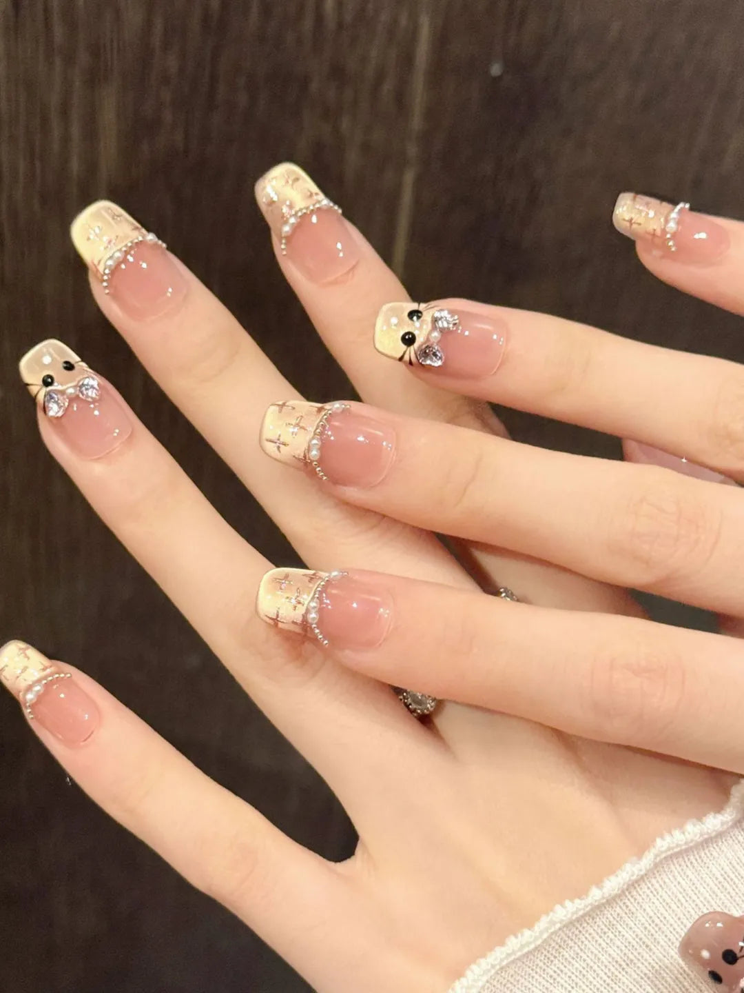 Style:Soft gradient peach tones with KT cat-eye and French hand-painted details, creating a sweet, cute, and flattering nails style perfect for everyday or standout looks.