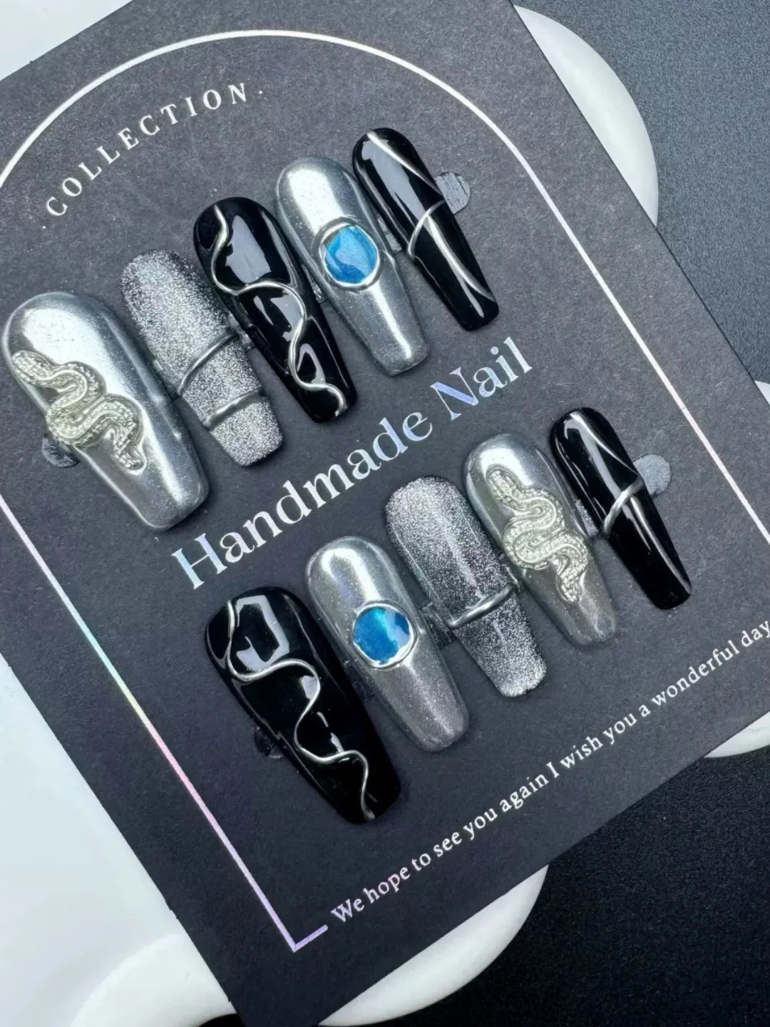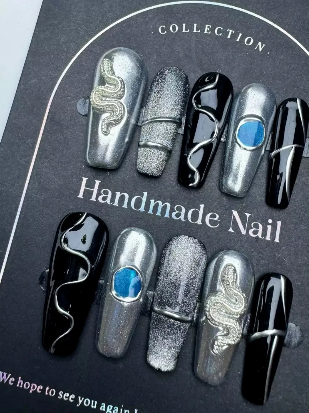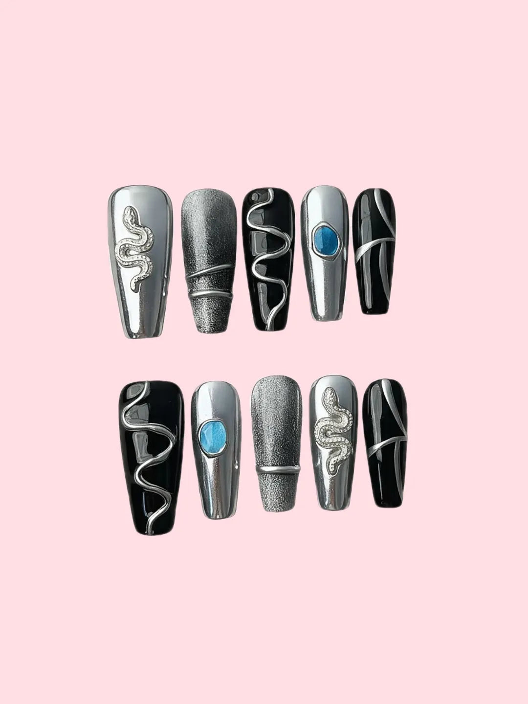 Black and silver tones with 3D snake and metal chain details β bold, stylish, and full of punk attitude.