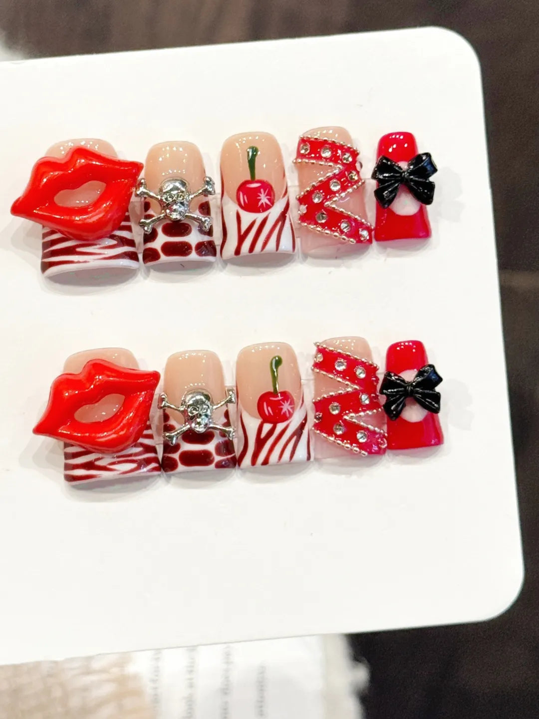 Red Flame Queen 100% handmade nails with fiery red tones, perfect for parties or bold everyday looks, adding confidence and charm to your nails.