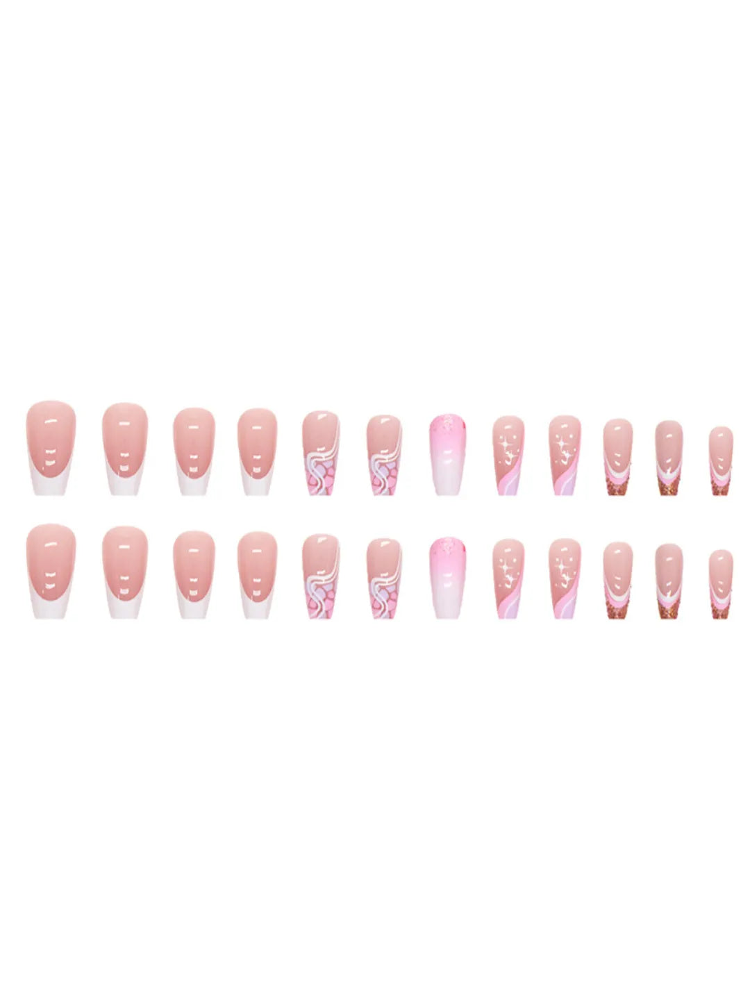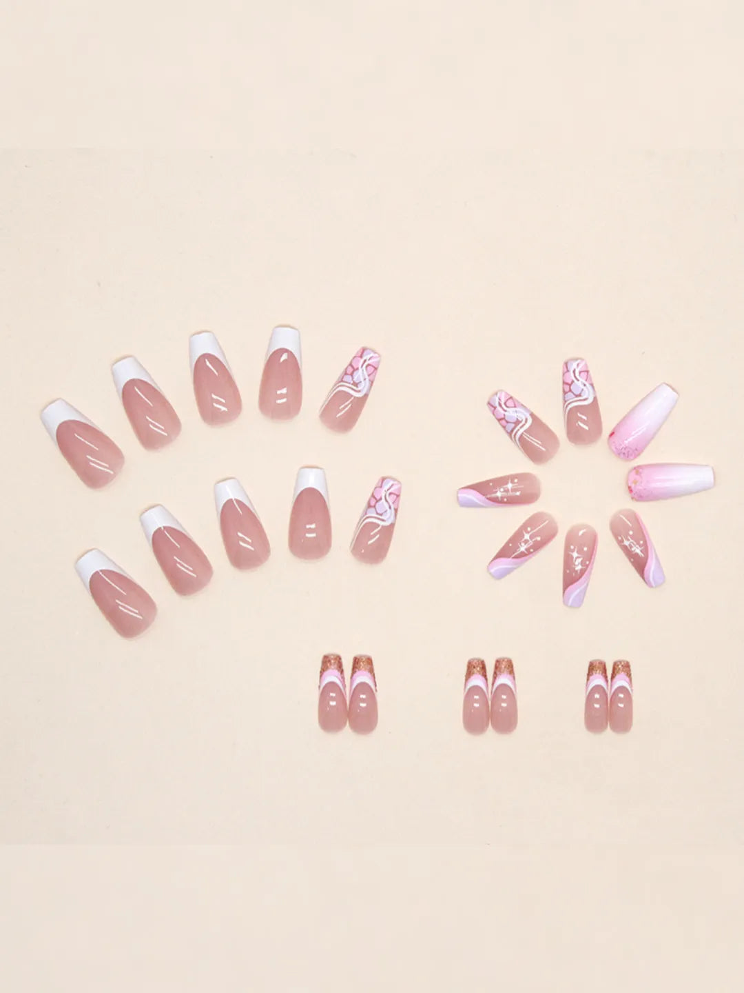 - 24 press-on nails / 24 adhesive pads / 1 nail file / 1 cuticle pusher