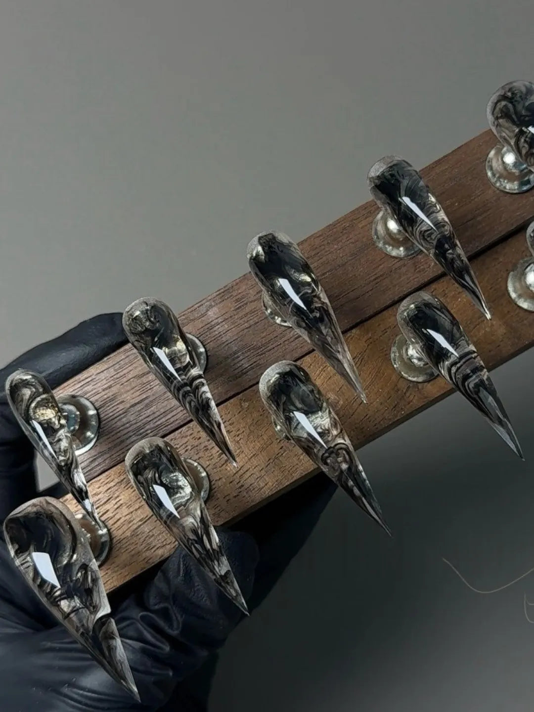 Style:Phantom black tones, mysterious, sharp and elegant, custom-made nails