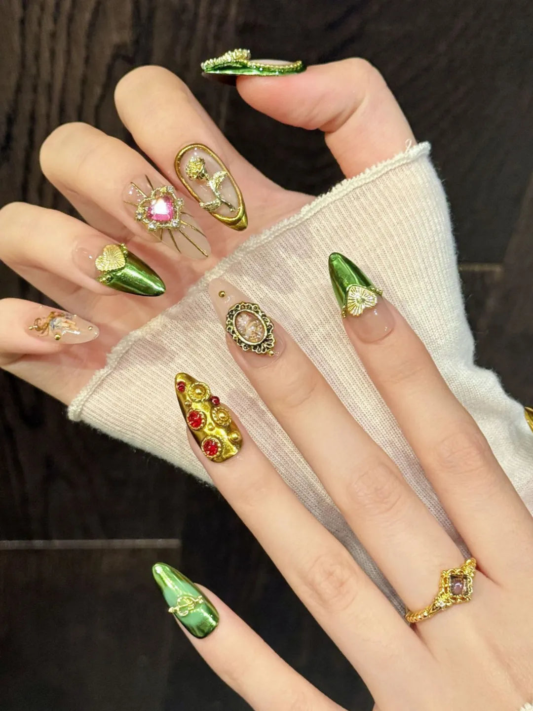 Style:Gold shimmer and dreamy motifs create luxurious, elegant fingertips.