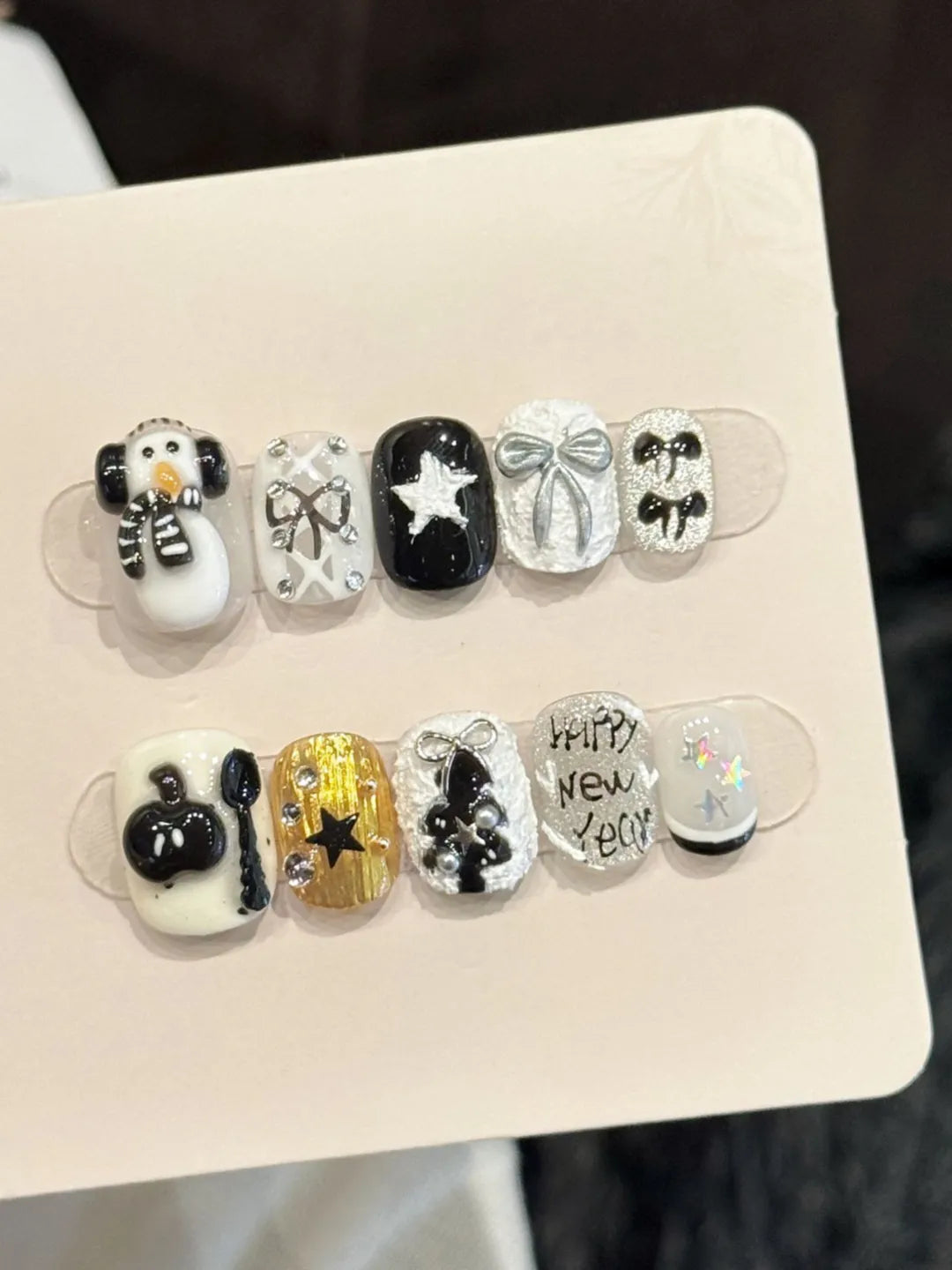Style:Designed with cute snowman elements to bring playful winter charm to your nails.