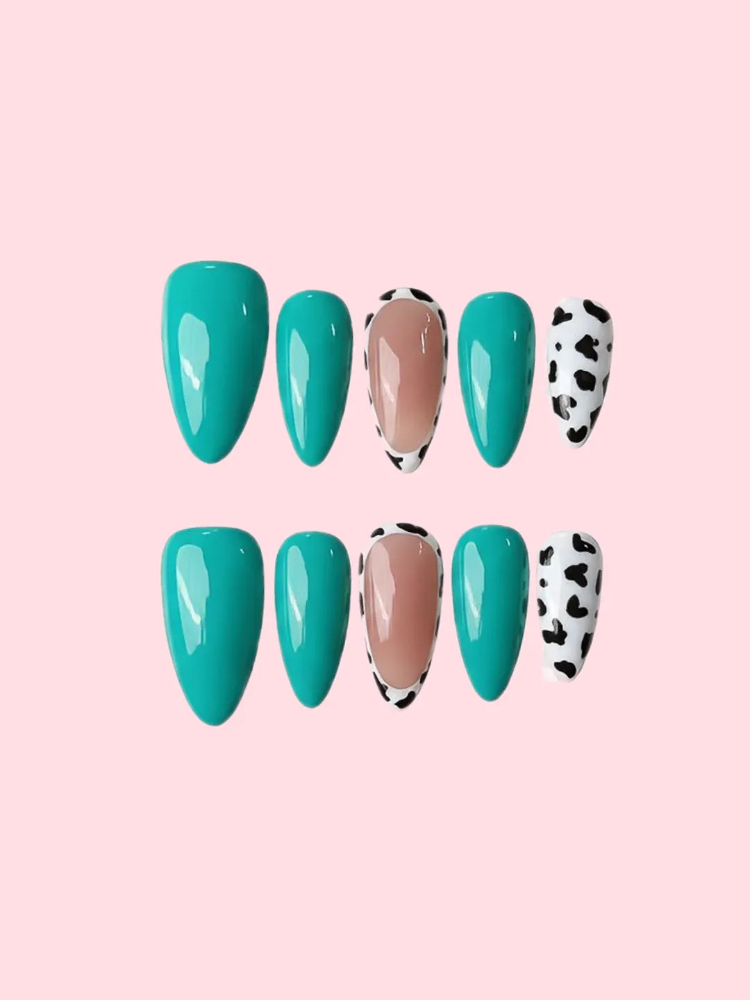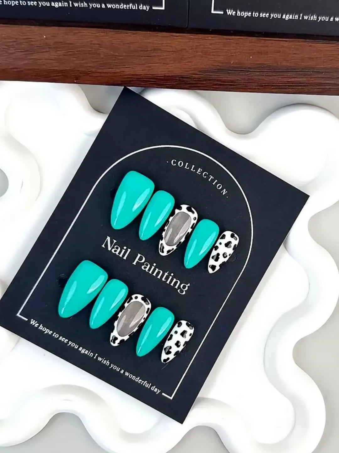Solid Leopard nails feature soft solid tones with subtle leopard accents, simple yet stylish, perfect for everyday or office wear with elegant confidence.
