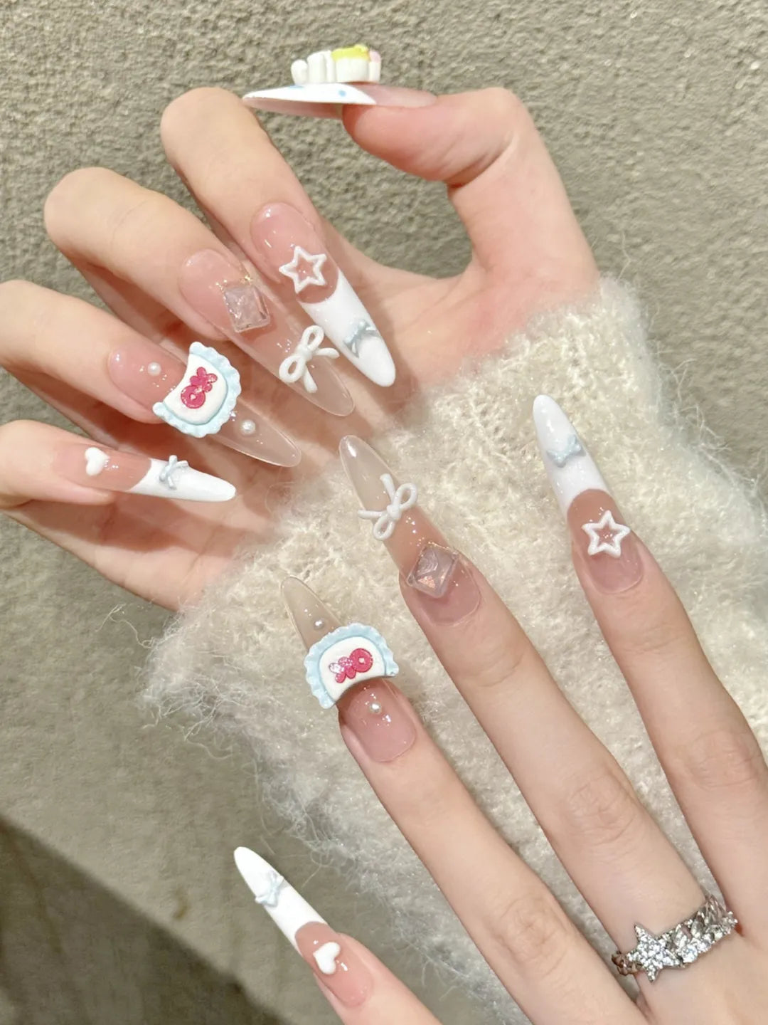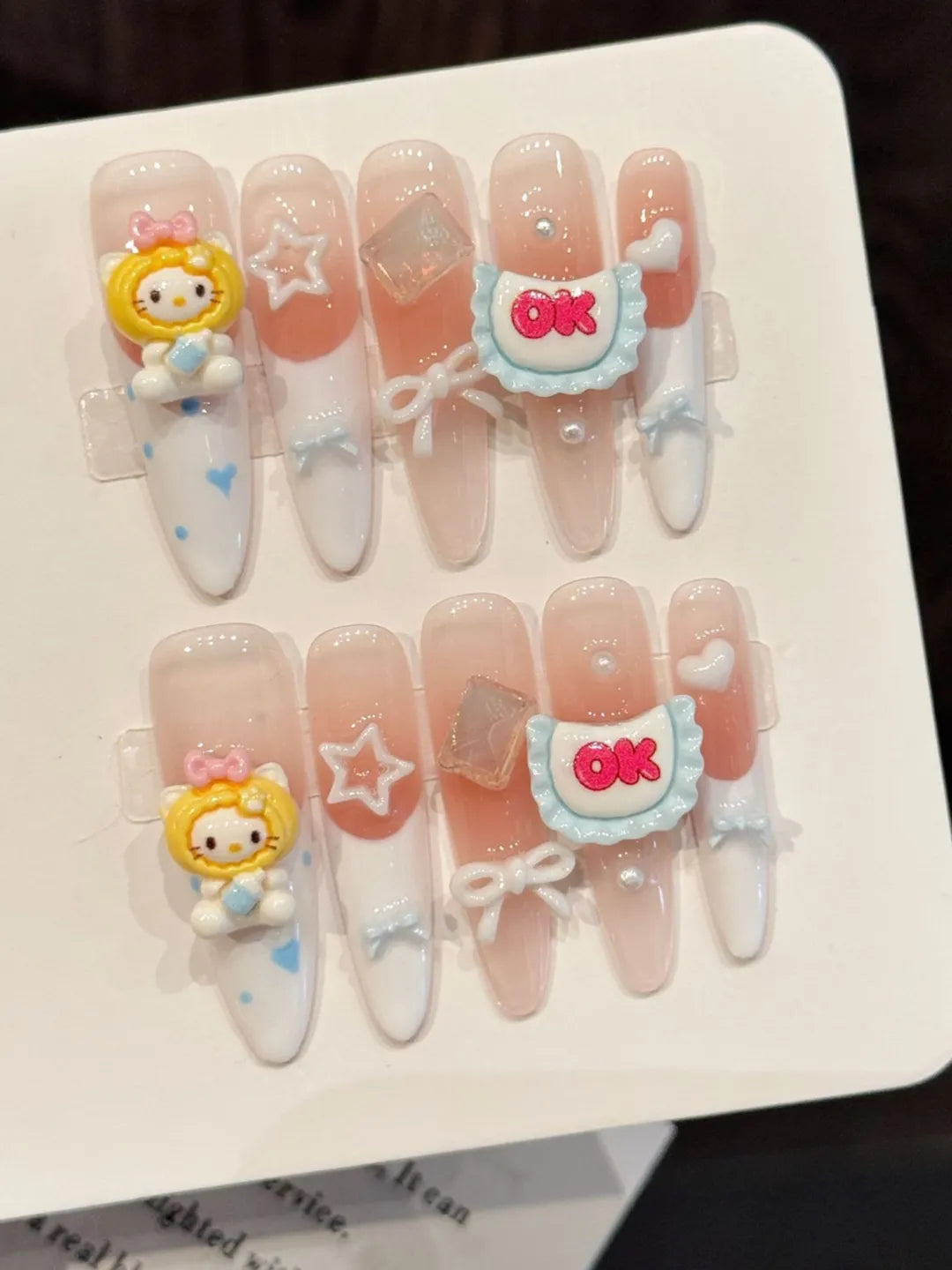 Style:Sweet pink-nude tones combined with 3D Kitty and bow accents for a soft, cute yet refined look.