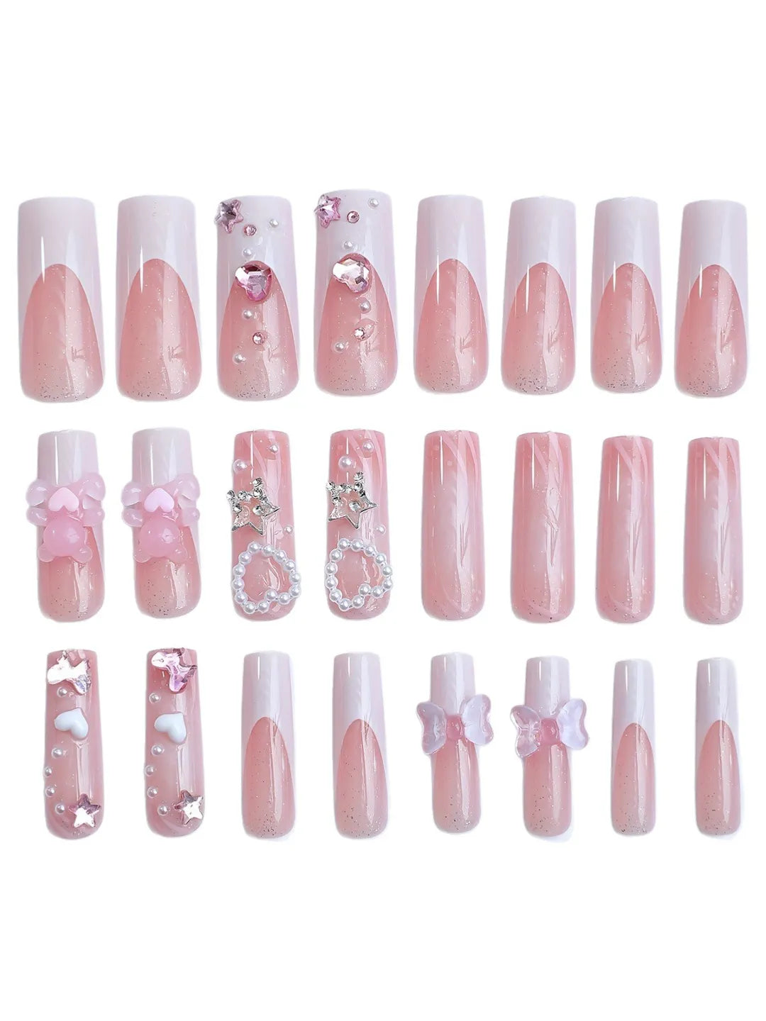 - 24 press-on nails / 24 adhesive pads / 1 nail file / 1 cuticle pusher