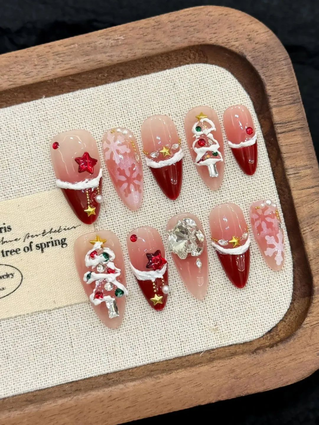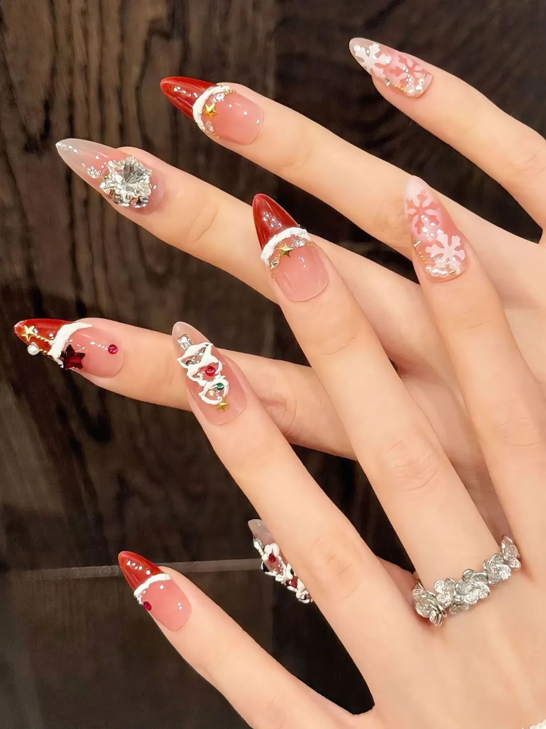 Velvet Snowflake 100% handmade nails with dreamy winter design, perfect for holiday or winter looks, adding delicate elegance to your nails.