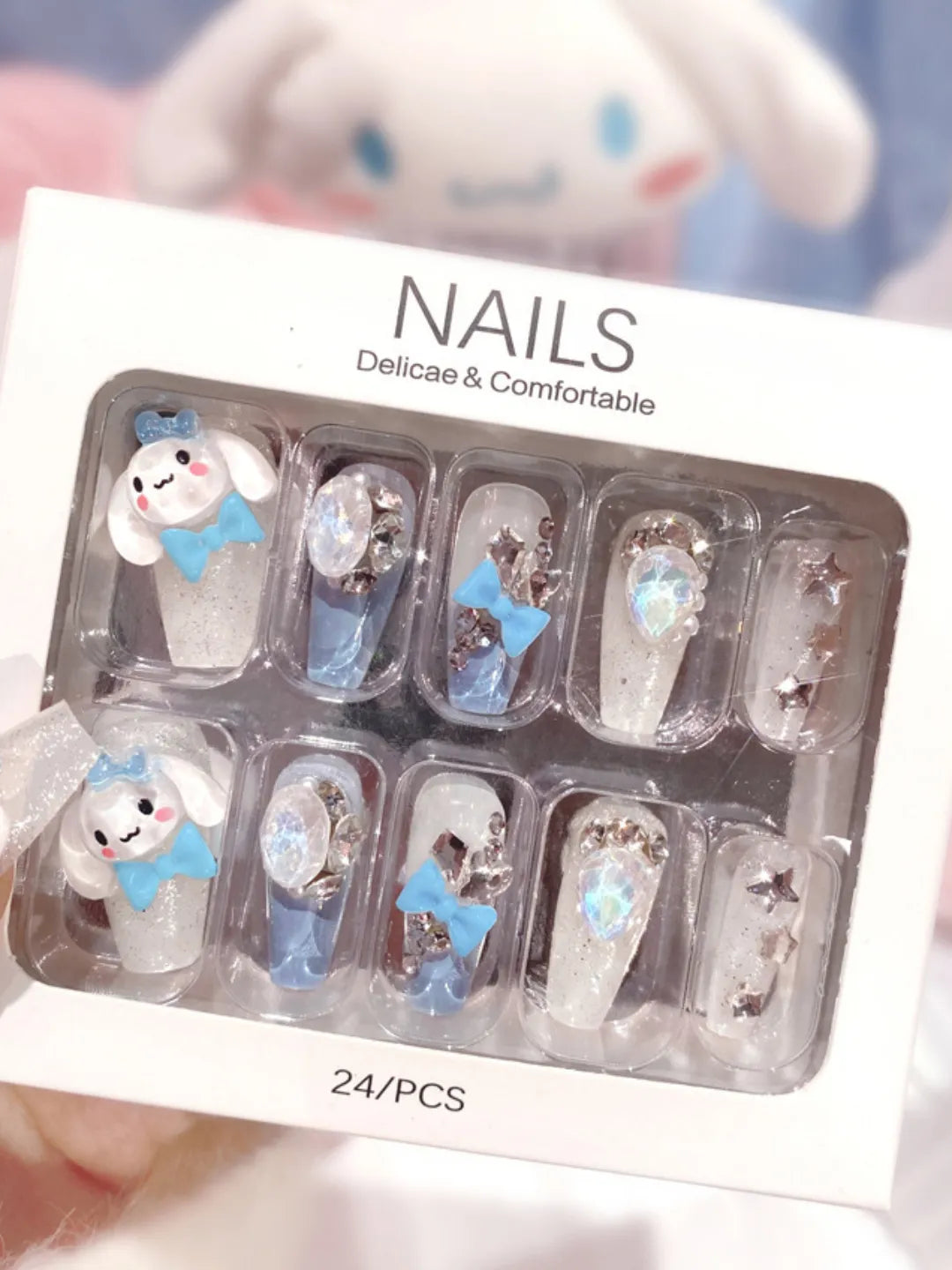 - 24 press-on nails / 24 adhesive pads / 1 nail file / 1 cuticle pusher