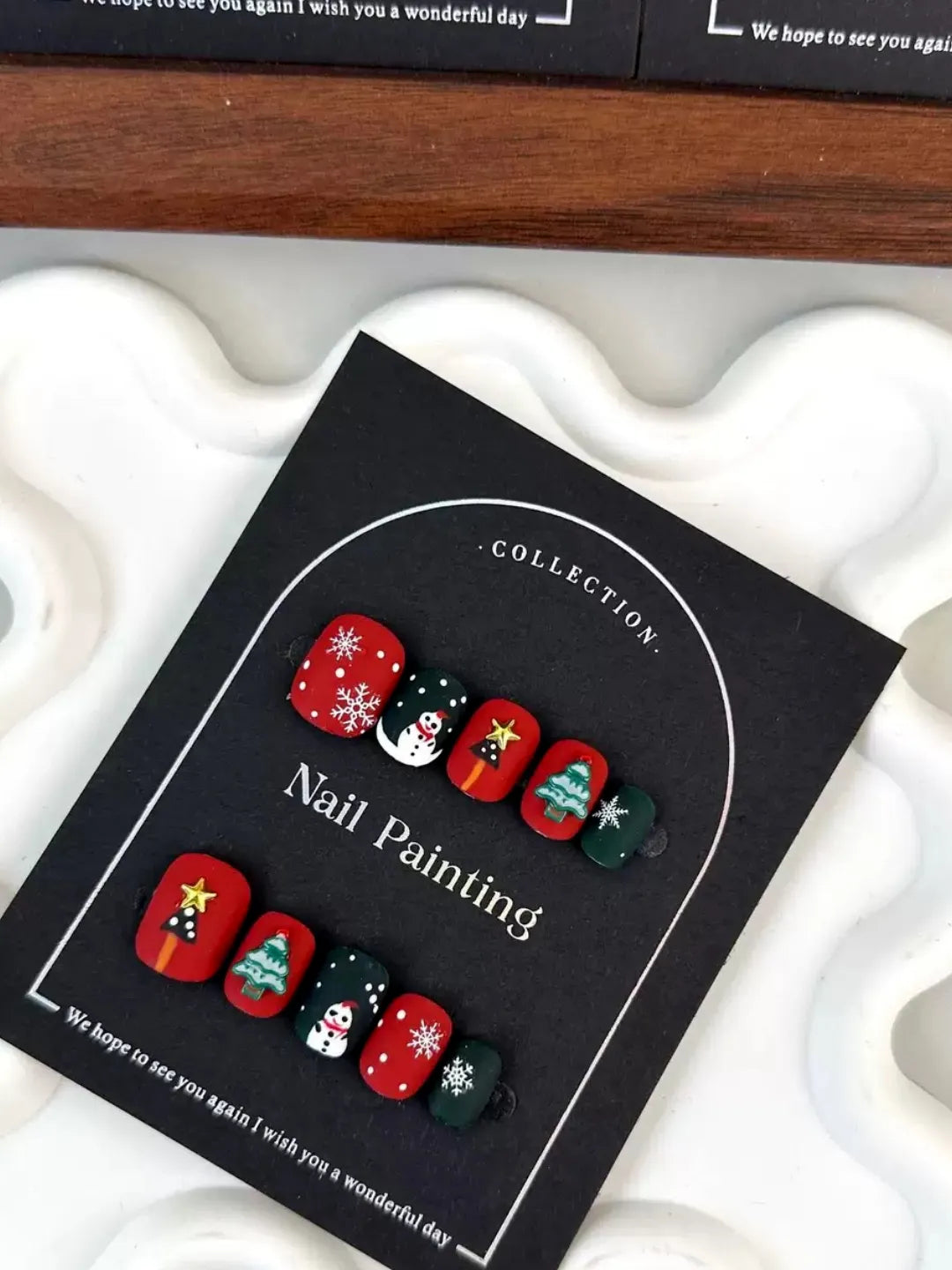 - Style: Warm festive gradient nails, cozy autumn-winter vibes
